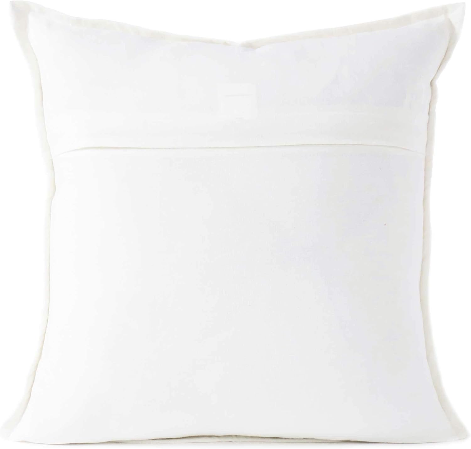 Eyes of India Embroidered Decorative Boho Throw Pillow Cover with Mirrors, Handmade Bohemian Accent Cushion Case for Sofa Couch Bedroom Living Room (White, 24" x 24")