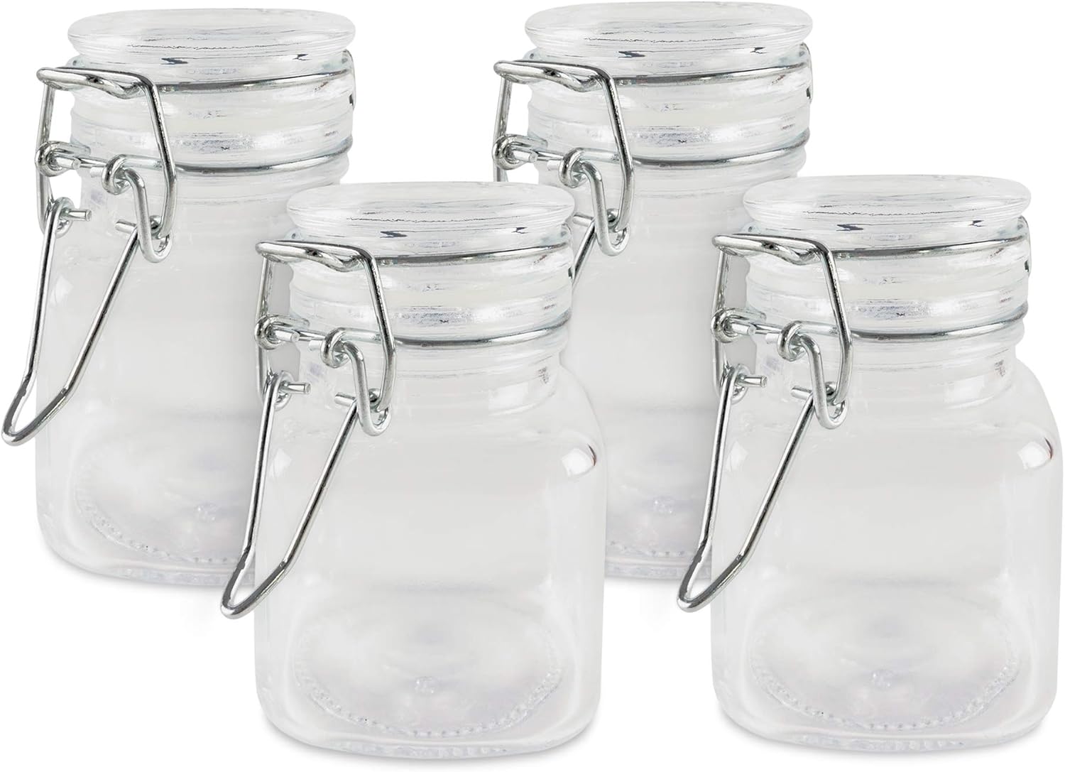 3 1/4" Square Glass 3oz Jar with Hinge Glass Lid for Home Kitchen, Arts & Crafts Projects, Decoration, Snack Foods and Sauces (4 Pack) by Super Z Outlet