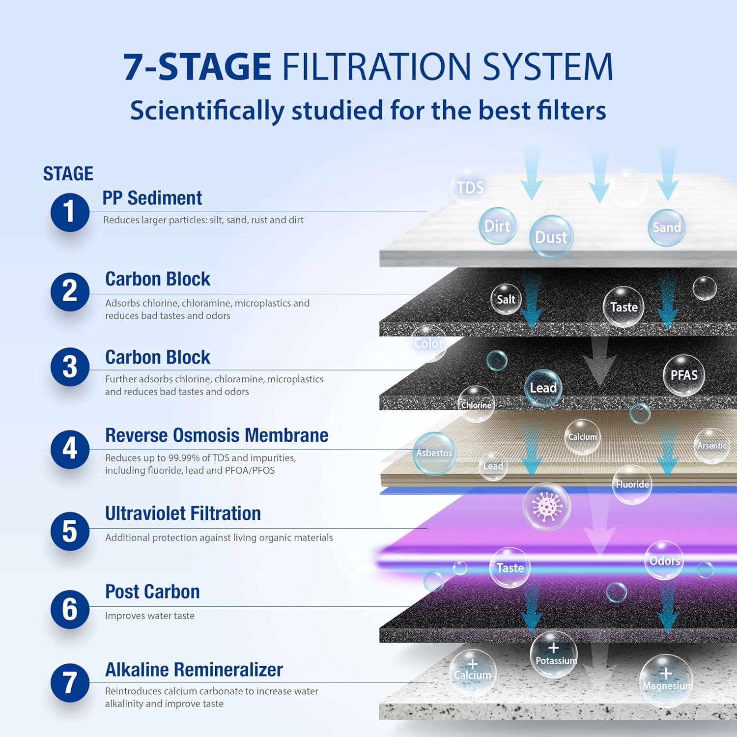 - Supreme quality โ designed in USA to water safety & your health. Effective in removing up to 99% of contaminants including arsenic, chlorine, lead, fluoride, heavy metals, virus and 1000+ contaminants