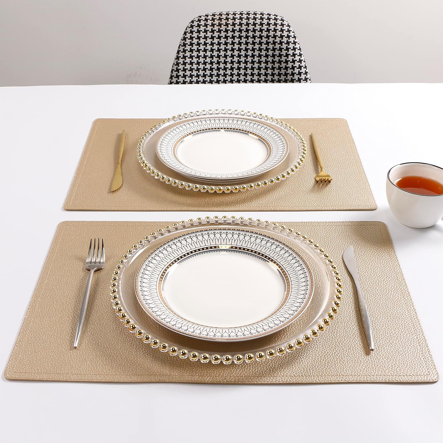 Faux Leather Gold Placemats, PU Table Mats, Set of 4, Waterproof, Heat Resistant, Non-Slip, Easy to Clean for Kitchen Dining Table,Conference Table