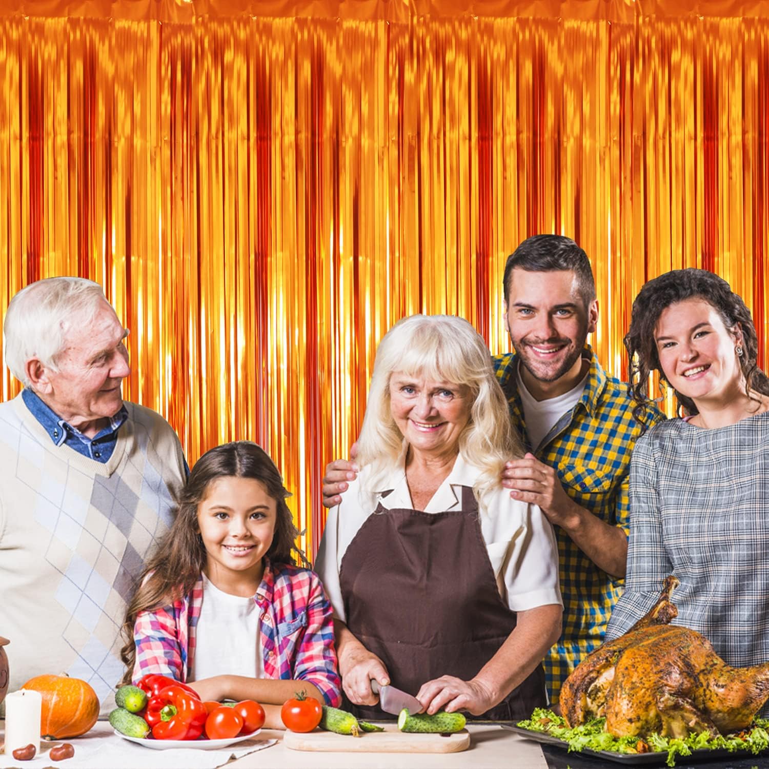 - Package Includes:1 pack orange foil fringe curtain,3.2 ft x9.8 ft each,suitable for hanging on a door or coverage a wall fully