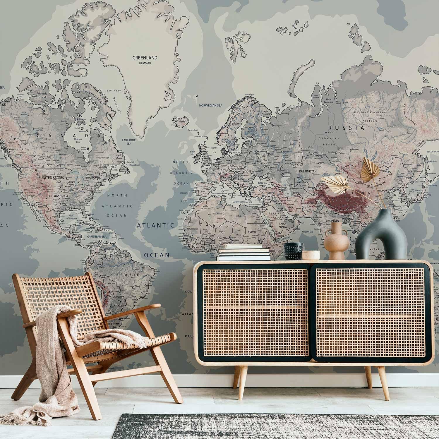 artgeist Wall Mural World Map 173x124 in - Peel and Stick Self-Adhesive Wallpaper Removable Large Sticker Foil Wall Decor Print Picture Image Design Map of The World k-A-0061-a-c