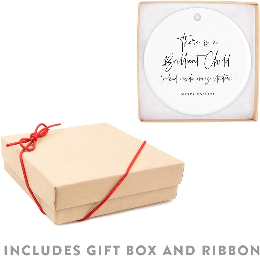 Andaz Press Round Ceramic Porcelain Christmas Tree Ornament for Teacher Thank You Appreciation Graduation Gift, There is A Brilliant Child Locked Inside Every Student. Marva Collins, 1-Pack