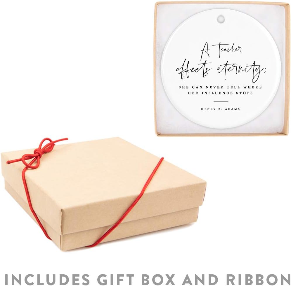 Andaz Press Round Ceramic Porcelain Christmas Tree Ornament for Teacher Thank You Appreciation Graduation Gift, A Teacher Affects Eternity; She Can Never Tell Where Her Influence Stops, 1-Pack