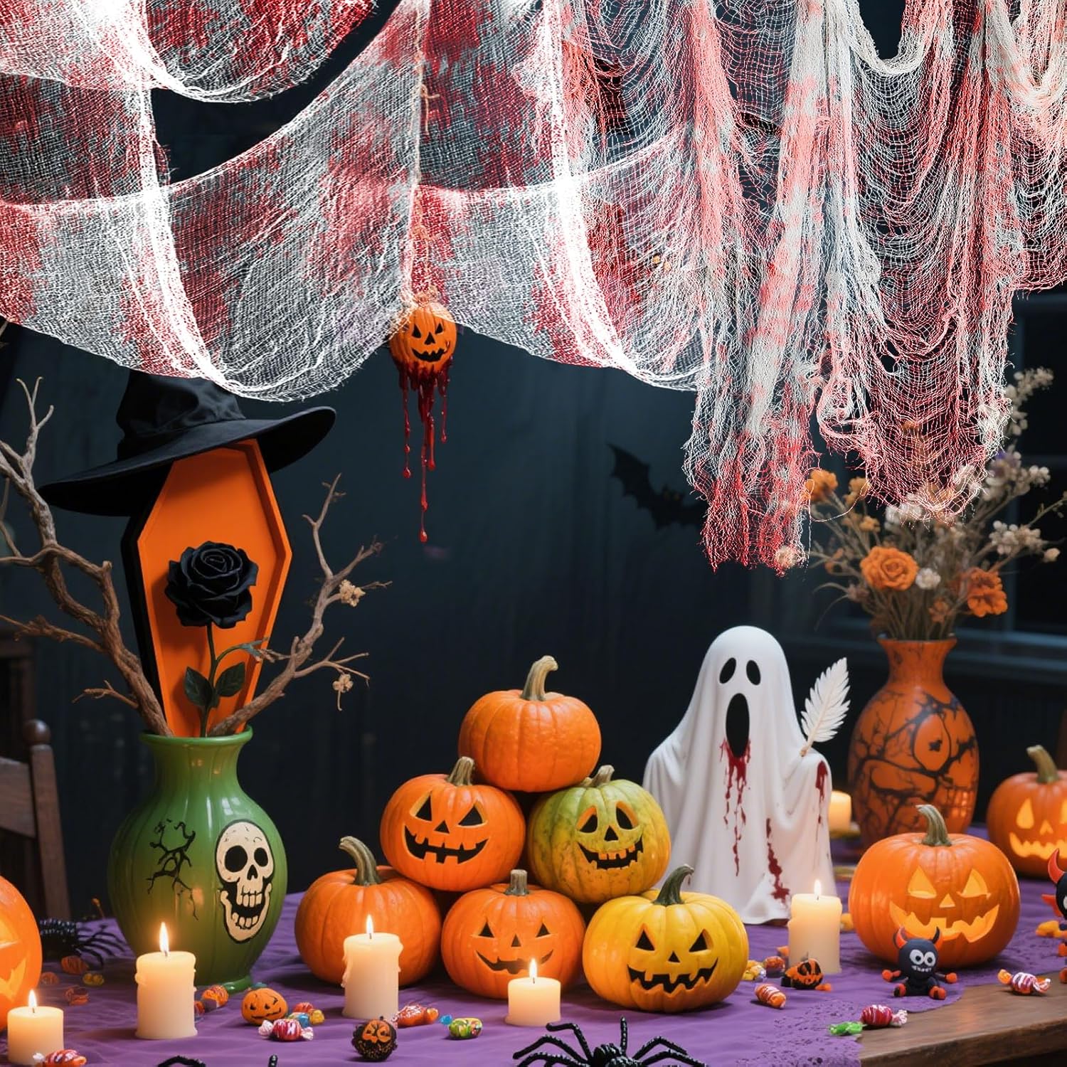 - Premium Material: the creepy cloth is made of fine uniformity of the latitude and longitude yarn, this soft gauze is easy to hang anywhere or the shape you want, it looks realistic and frightening.