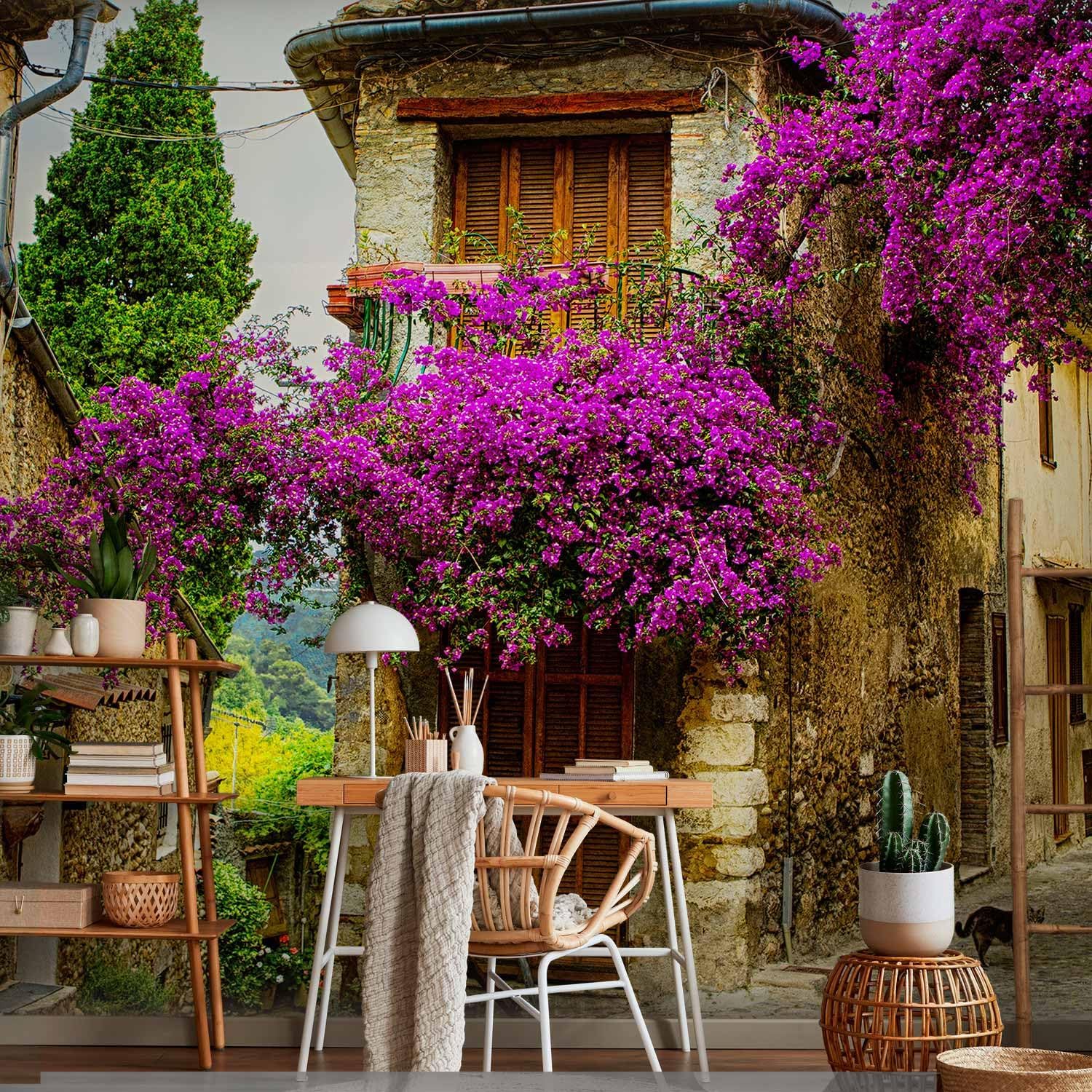 artgeist Wall Mural Architecture 216x98 in - XXL Non-Woven Corner Wallpaper Fleece Angle Wall Decor Photo Print Picture Image Design Modern Landscape Alley Flowers City d-B-0294-a-a