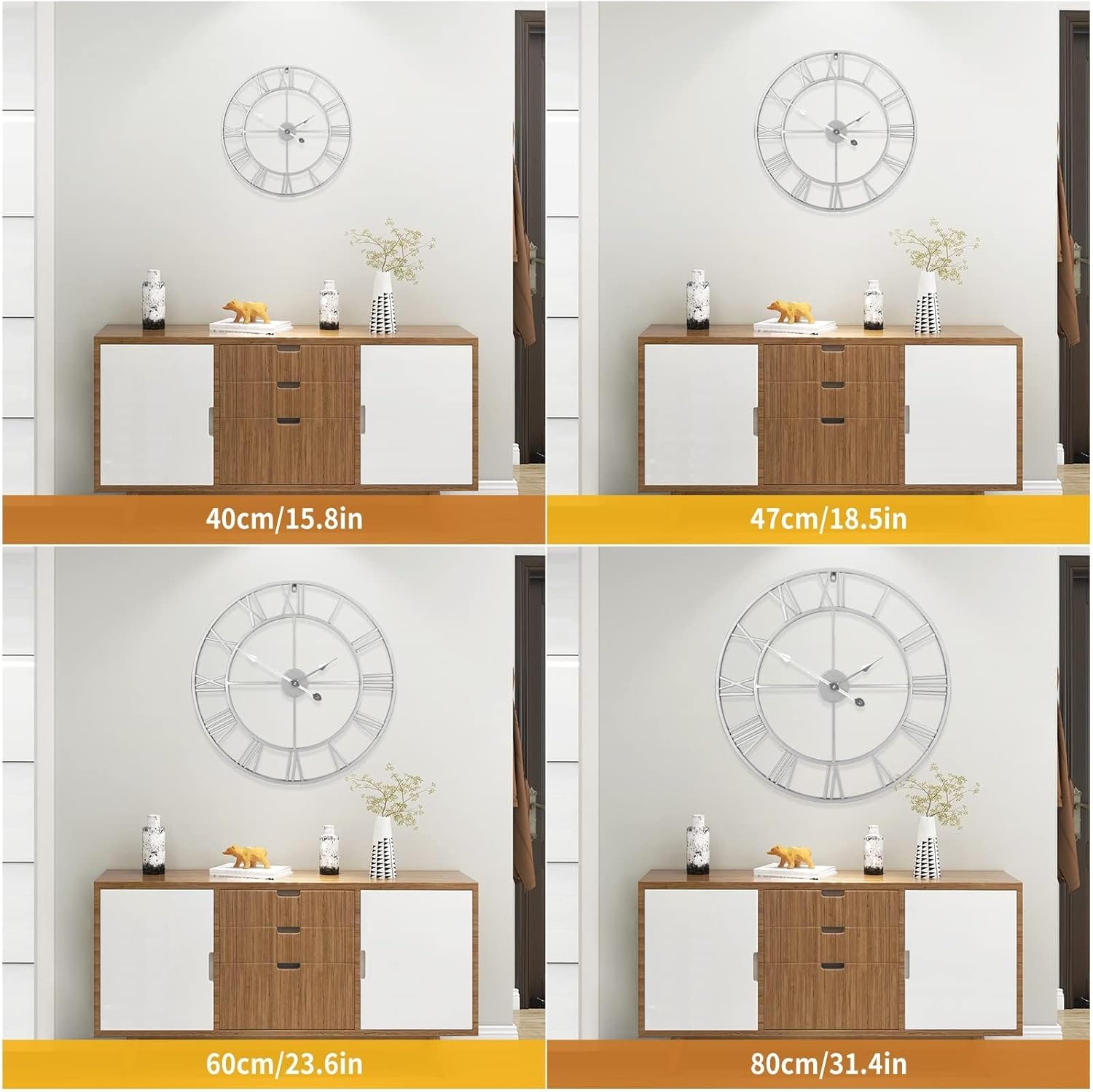 1st owned Large Wall Clock Silent Non-Ticking Roman Numerals Vintage Battery Operated (24 inch,18inch,16inch) Farmhouse Wall Clock for Living Room, Bedroom, Kitchen, Cafe Decor-Silver 40CM