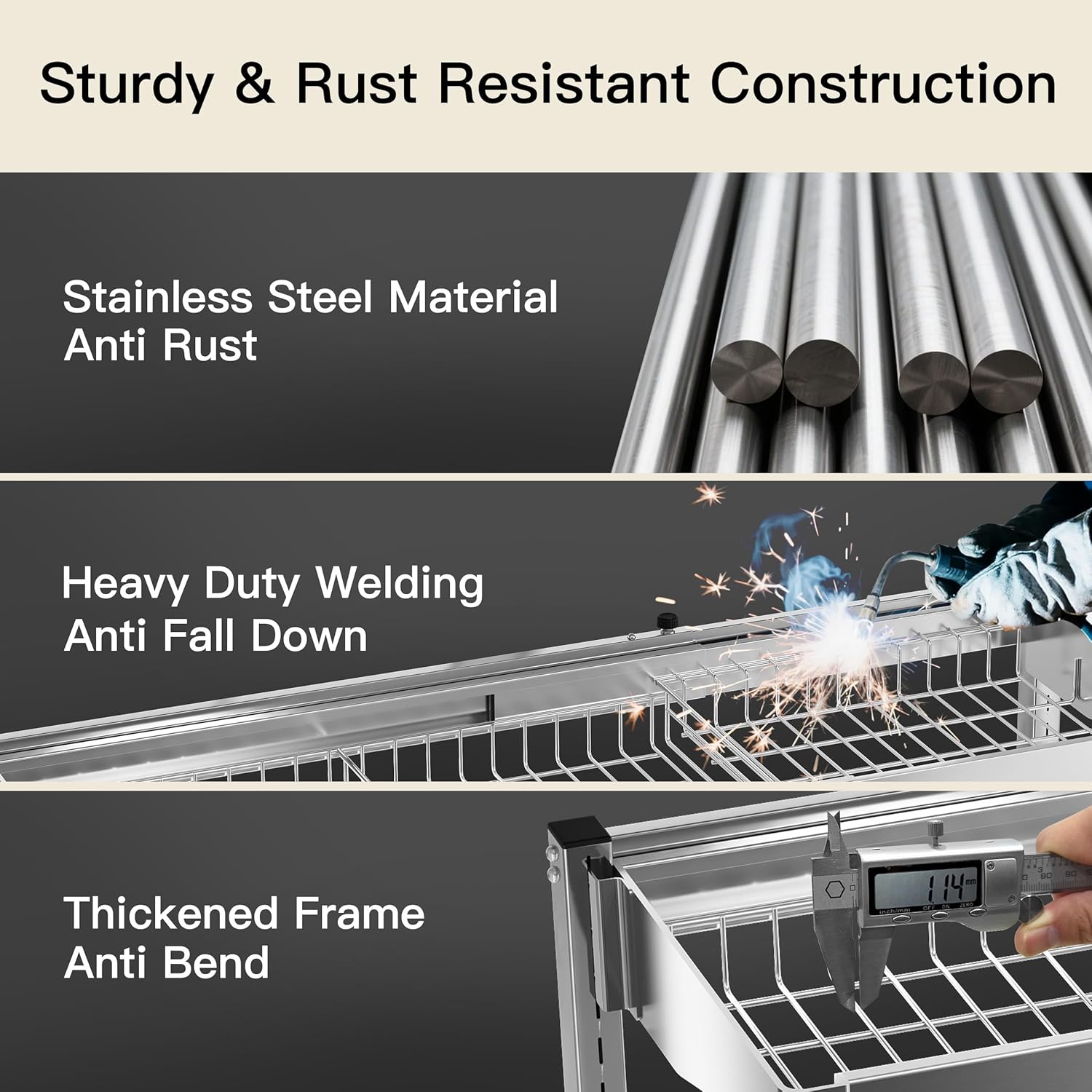 - π© Sturdy & Rust Resistant Construction: Crafted with heavy duty stainless steel and reinforced welding, this over the sink dish drainer drying rack resists corrosion and daily wear. Its industrial grade framework securely holds bulky pots, pans, and dishware without sagging, even when fully loaded, ideal for families seeking a lasting solution to countertop clutter