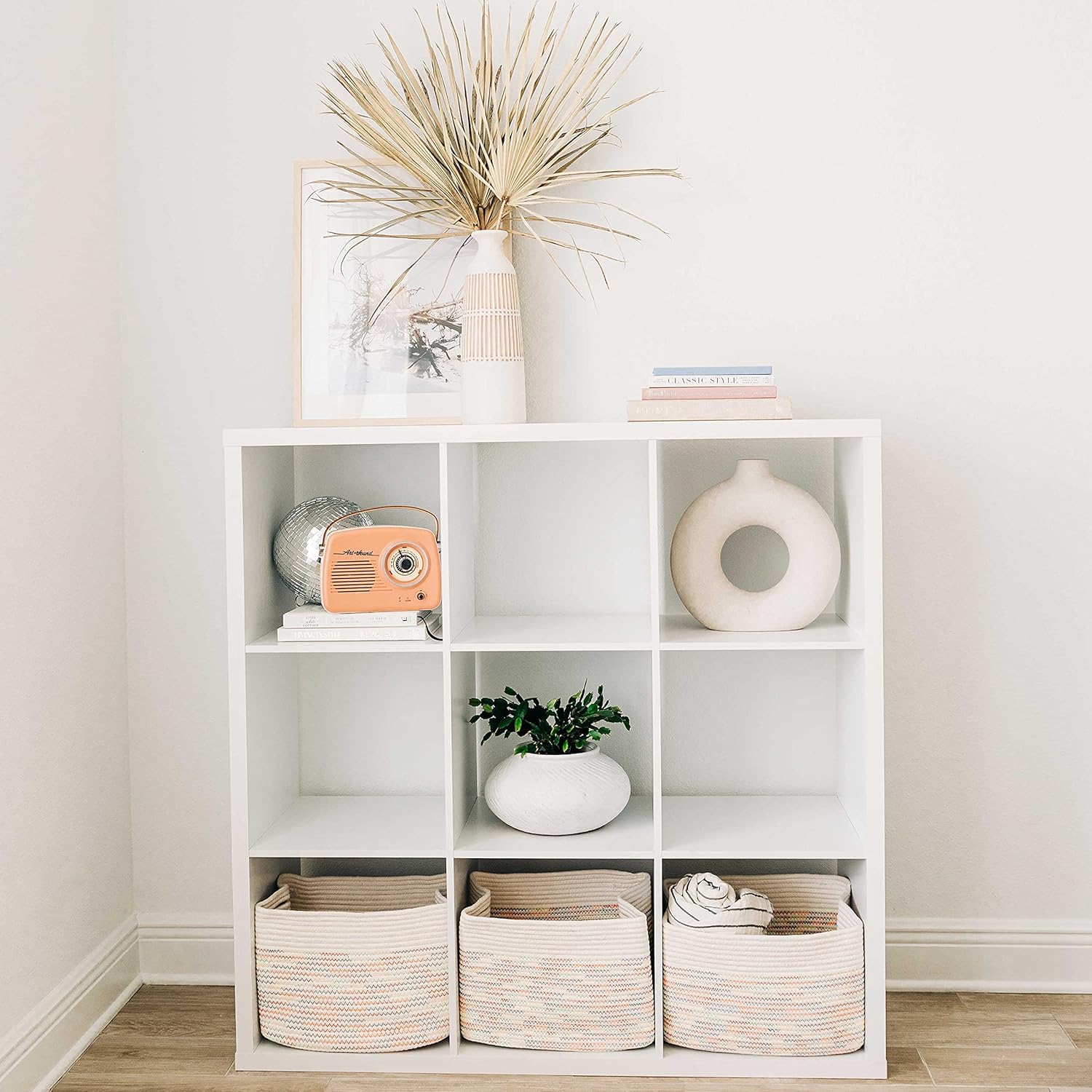OrganiHaus Woven Storage Baskets for Organizing, Cotton Rope Organizer Bins for Shelves, Closet & Nursery, Dog Toy Basket, Decorative Bins for Toys, Towels & Books - 15x10x9, Rainbow Stitches