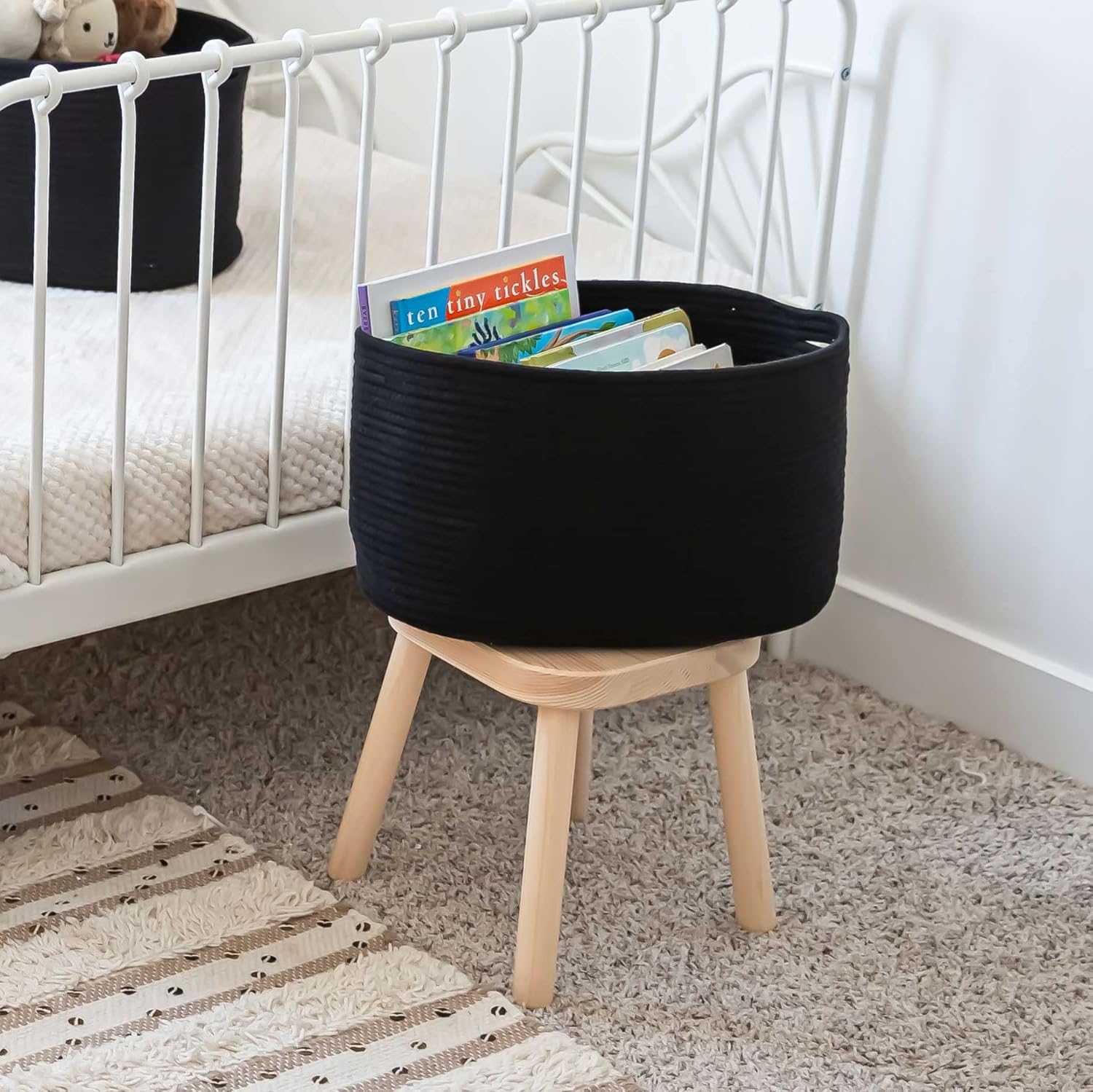 OrganiHaus Woven Storage Baskets for Organizing, Cotton Rope Organizer Bins for Shelves, Closet & Nursery, Dog Toy Basket, Decorative Bins for Toys, Towels & Books - 15x10x9, Black