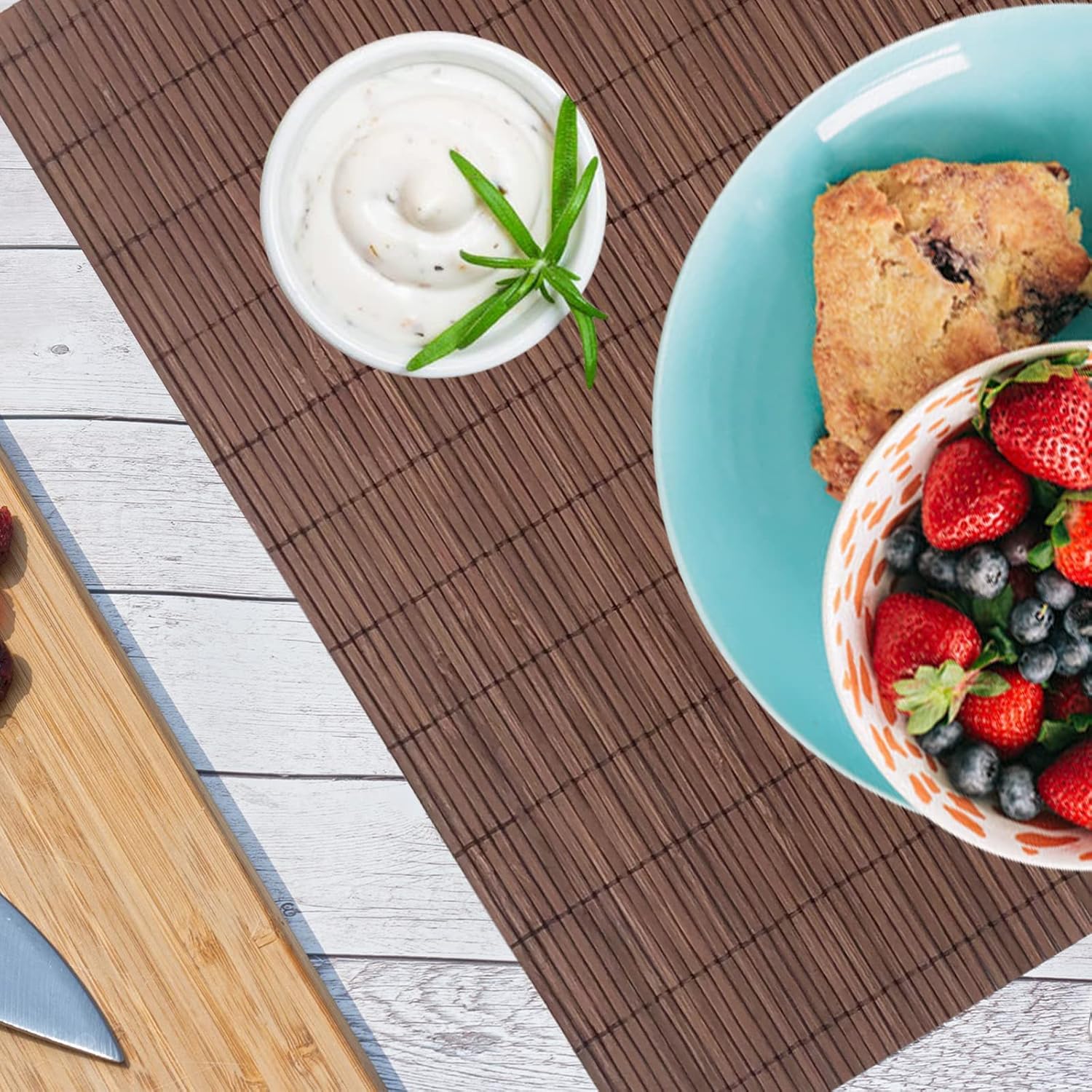 ANDSTAR Set of 8 Pcs Bamboo Placemats Sushi Rolling Mat Japanese Style Natural Anti-Slip Bamboo Placemats Washable Heat-Resistant Table Mats for Dining Room and Kitchen(Chocolate)