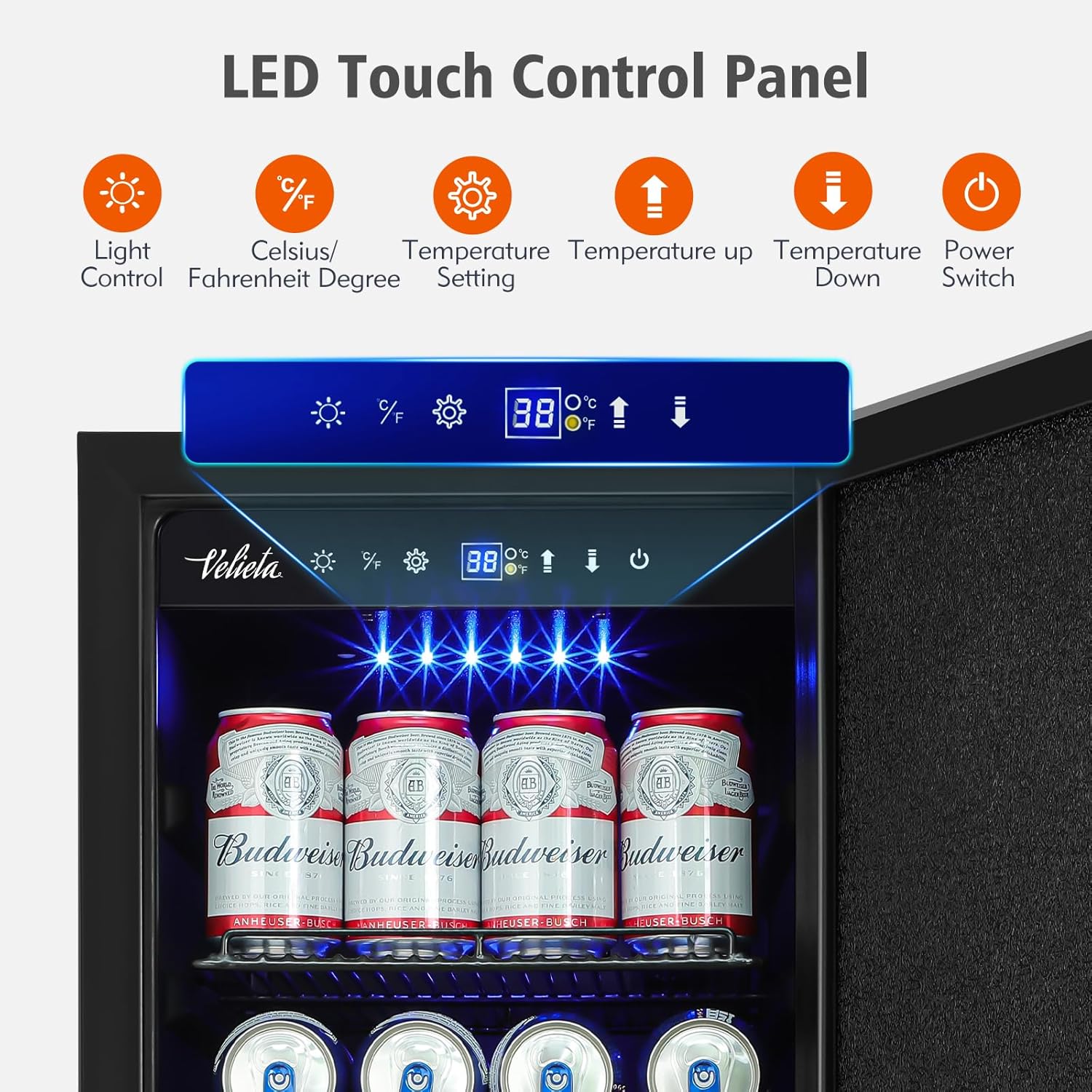 - 【Moveable shelves & LED Ambient light】The beverage cooler has 3 removable shelves, you can adjust the height of each layer to meet your demands of storage different sizes of beverages. Besides the refrigerator is equipped with a digital display panel which make you operate it conveniently and easily