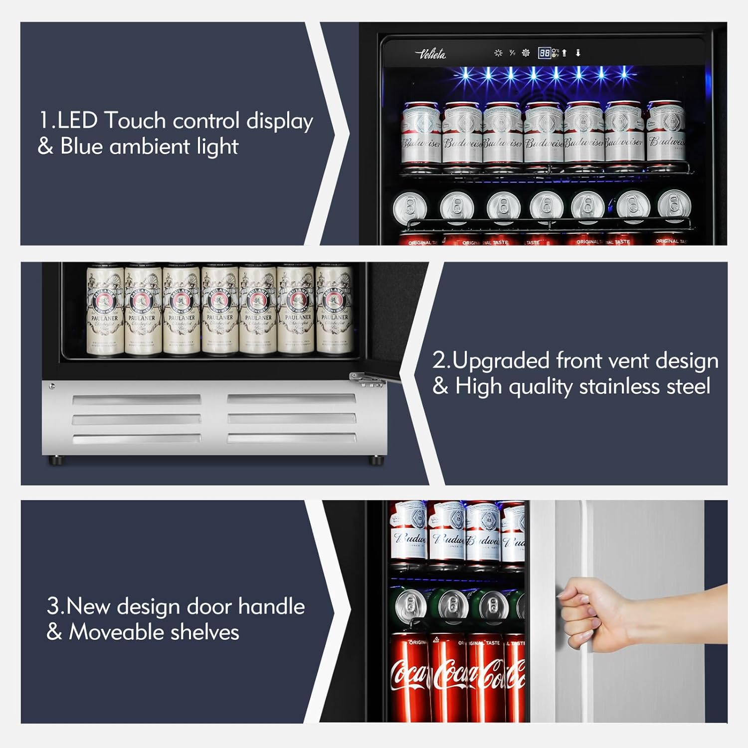 - ăUnder counter built-in/FreestandingăVelieta beverage refrigerator has the design of the front vent, you can install it directly under the Counter or freestanding. It can perfectly fit for 24inch space to be built-in. You can adjust the level and height of the refrigerator Via the Bottom feet.