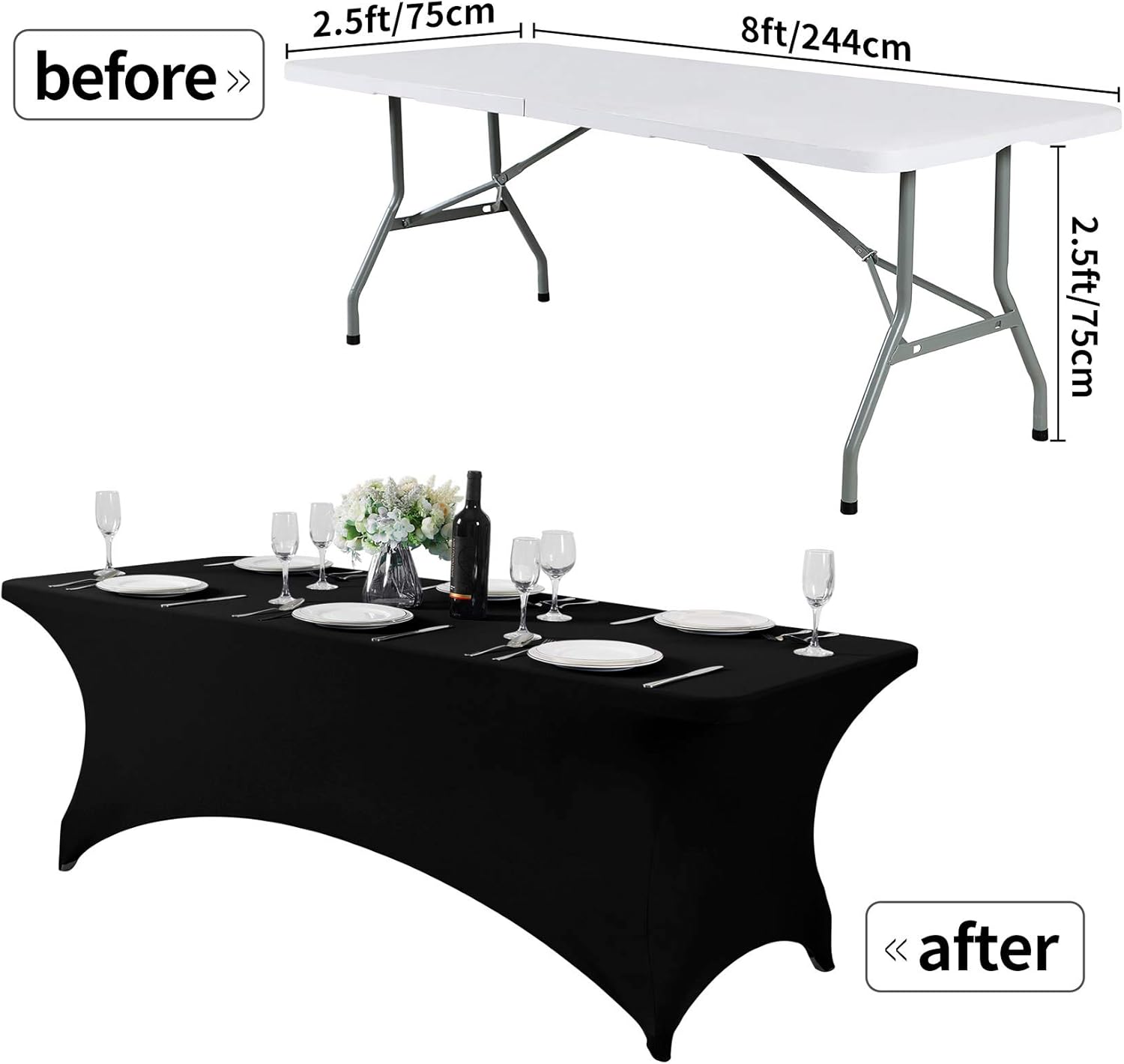 2Pack Spandex Table Cover for 8FT or 4ft or 6ft Table Universal Fitted Stretch Tablecloth for Party, Banquet, Wedding and Events-Black
