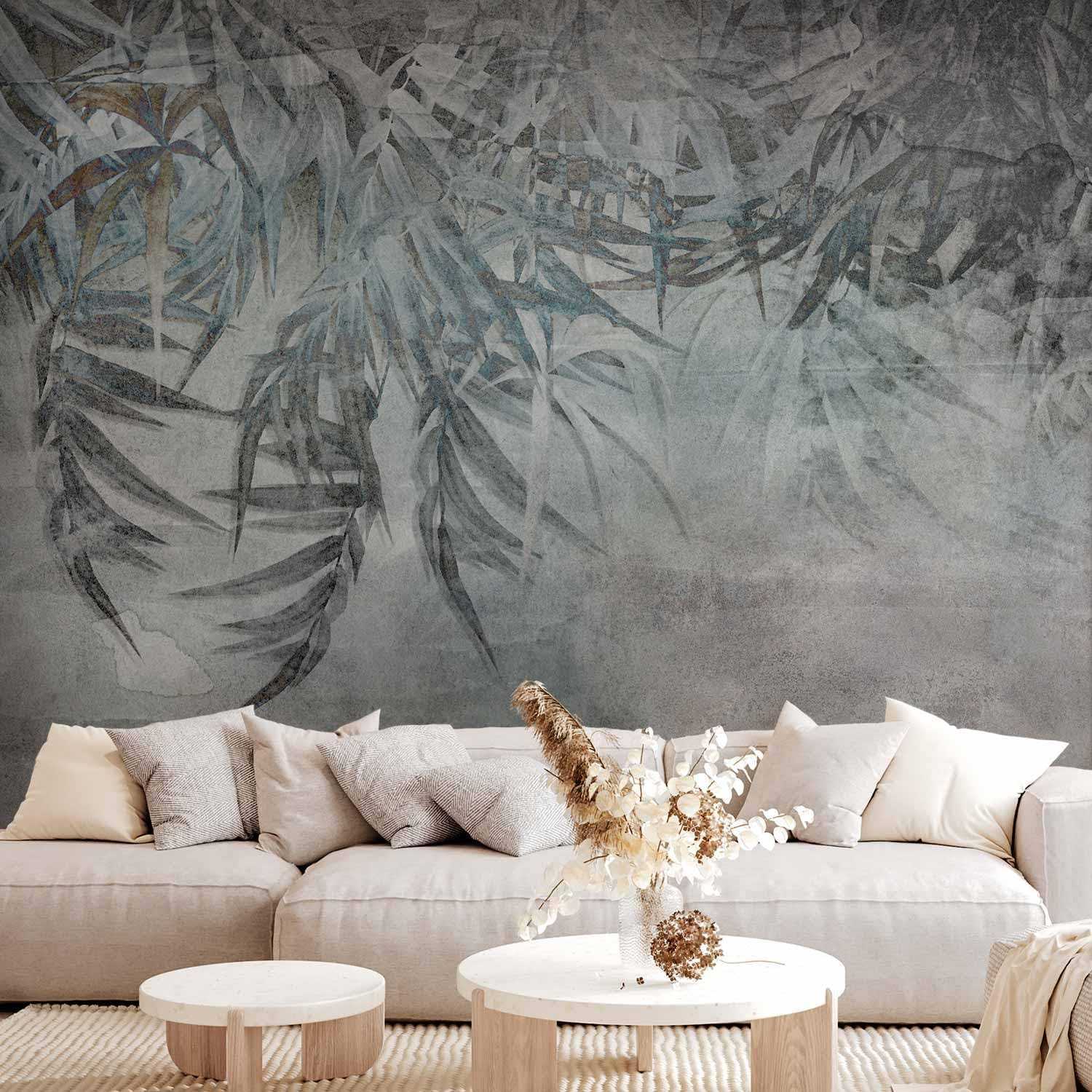 artgeist Wall Mural Leaves 138x101 in - XXL Non-Woven Wallpaper Fleece Wall Decor Photo Print Picture Image Design Palm Leaves Concrete Nature Grey b-C-10103-a-a