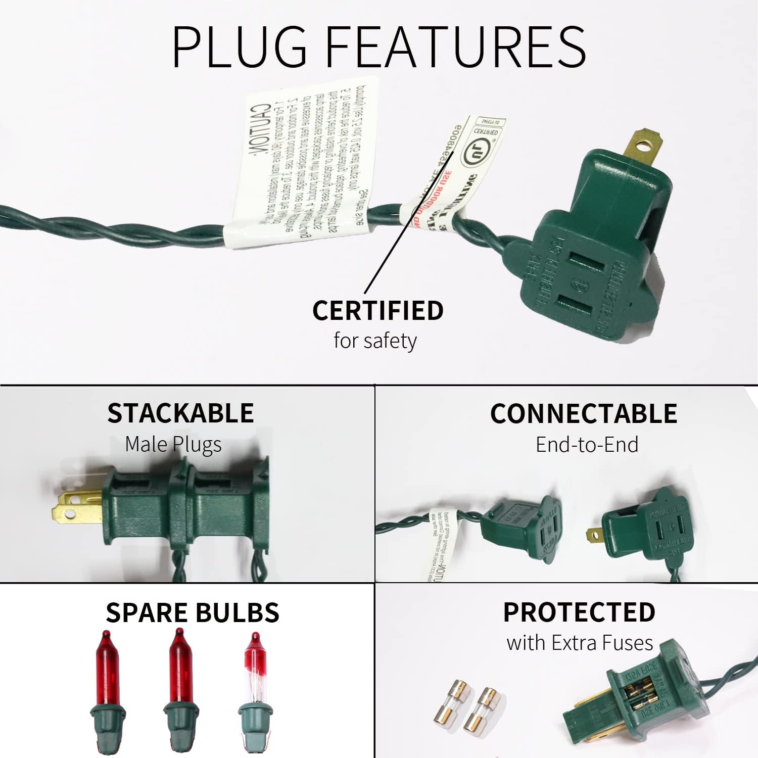 - Safty and Easily: High quality UL certified products ensure the safety of you and your family, Decorate with 100 red incandescent mini lights with green wire will give a soft festive feel to your Christmas.
