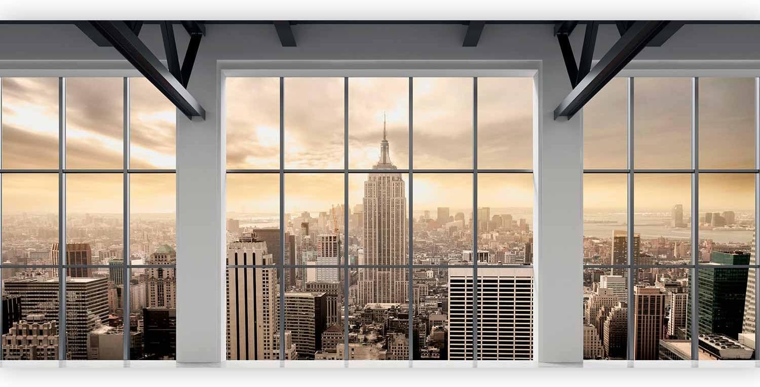 artgeist Wall Mural New York City 216x98 in - XXL Non-Woven Corner Wallpaper Fleece Angle Wall Decor Photo Print Picture Image Design Modern Window View Skyline Panorama c-A-0074-a-e