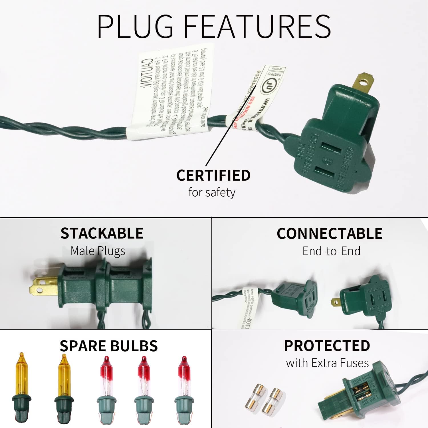 - Safty and Easily: High quality UL certified products ensure the safety of you and your family, Decorate with 300LIGHTS(2*150L) yellow incandescent mini lights with green wire will give a soft festive feel to your Christmas.
