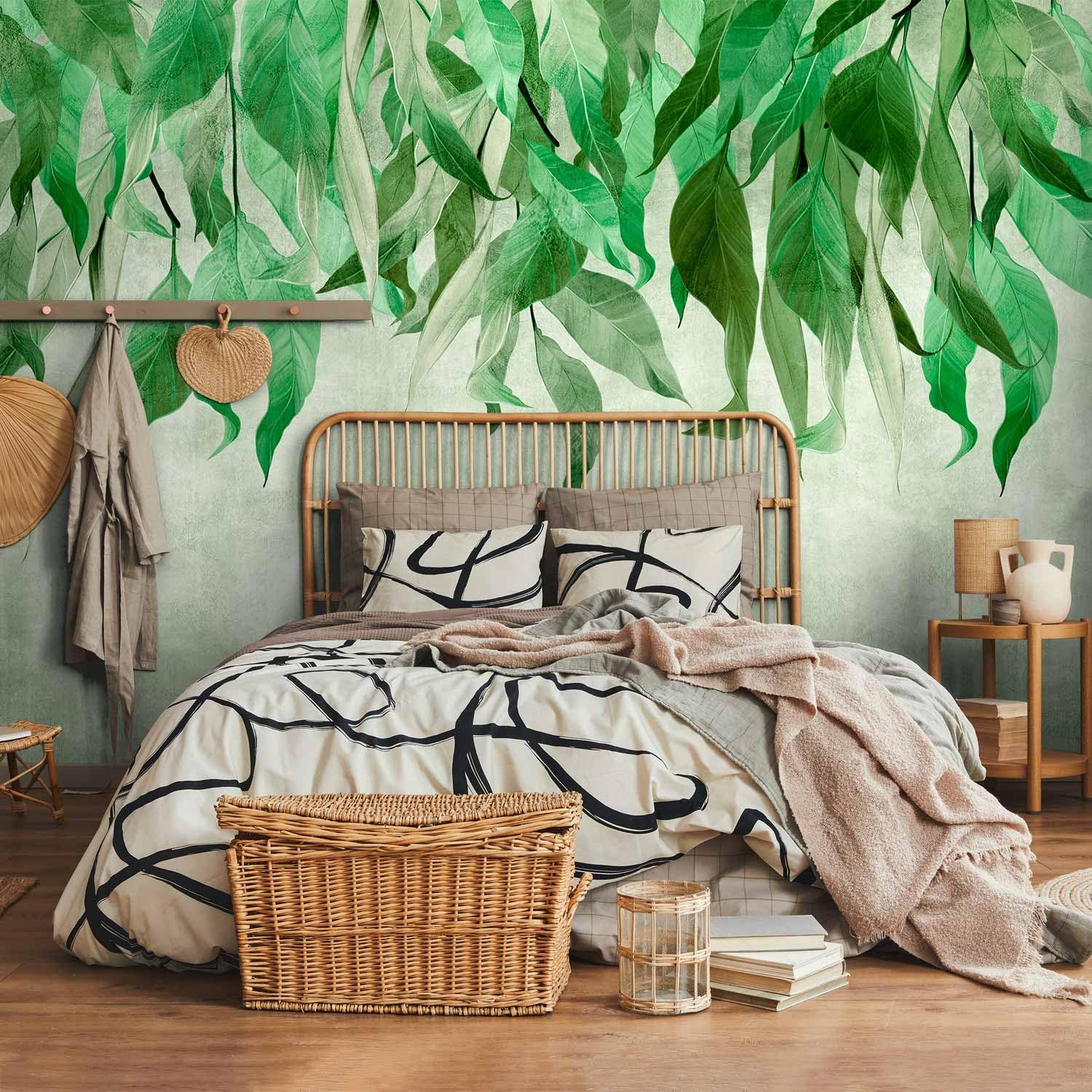 artgeist Wall Mural Hanging Leaves 135x101 in - Peel and Stick Self-Adhesive Wallpaper Removable Large Sticker Foil Wall Decor Print Picture Image Design Nature Botanical Concrete Green b-C-10146-a-a
