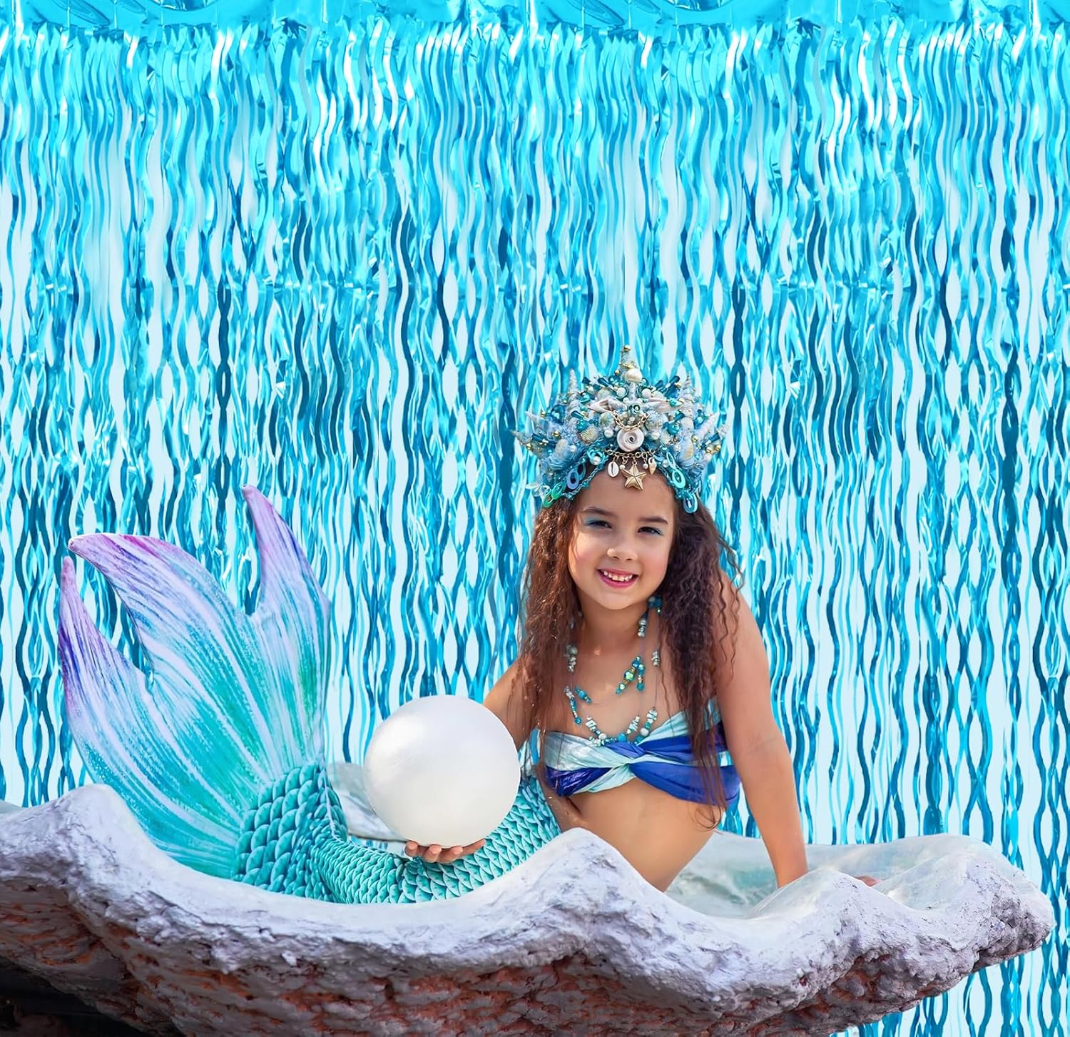 - Package Includes:2 pack wavy light blue foil fringe curtains,3.2 ft x 6.5 ft each,suitable for hanging on a door or coverage a wall fully