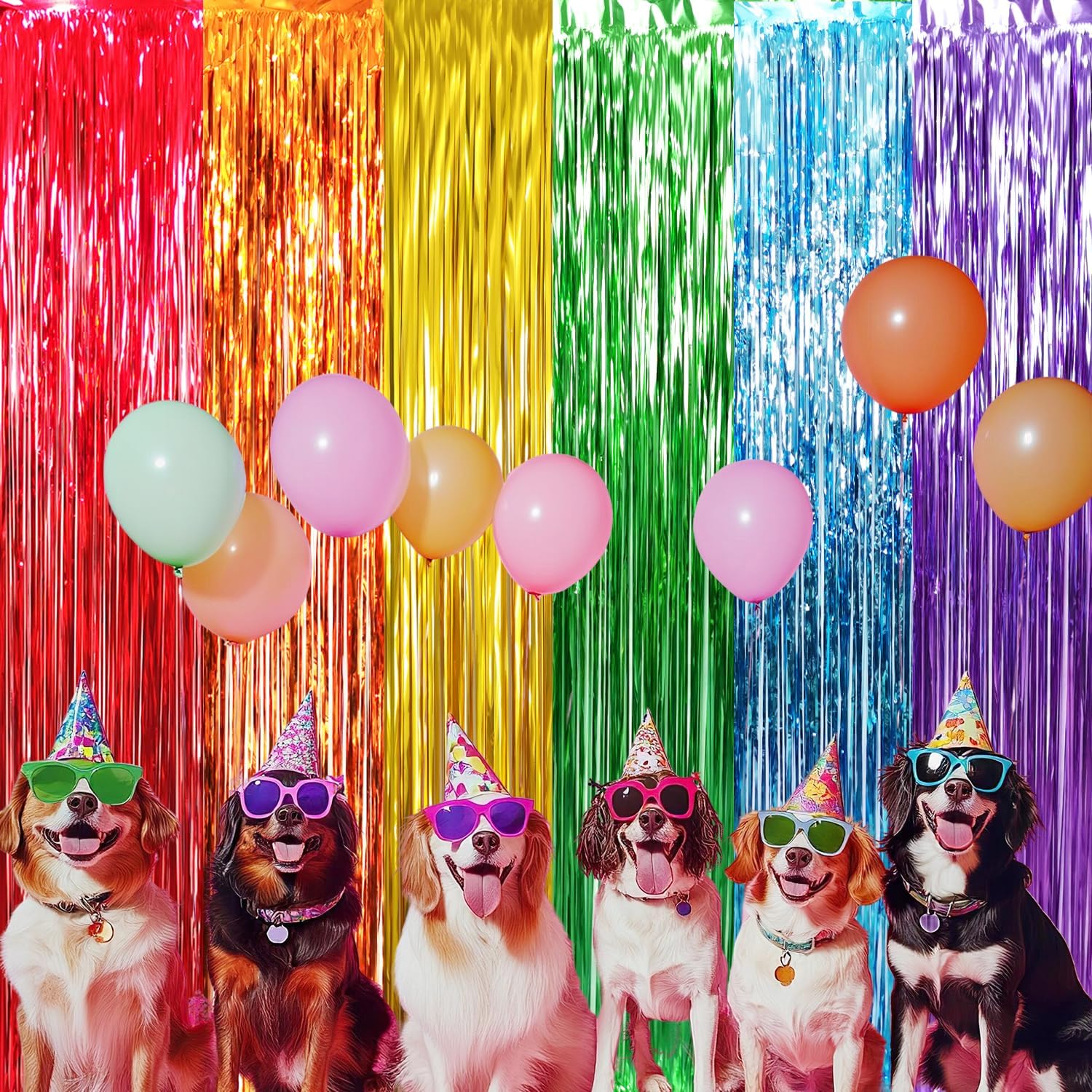 - Package Includes:2 pack rainbow foil fringe curtains,3.2 ft x 8.2 ft each,suitable for hanging on a door or coverage a wall fully