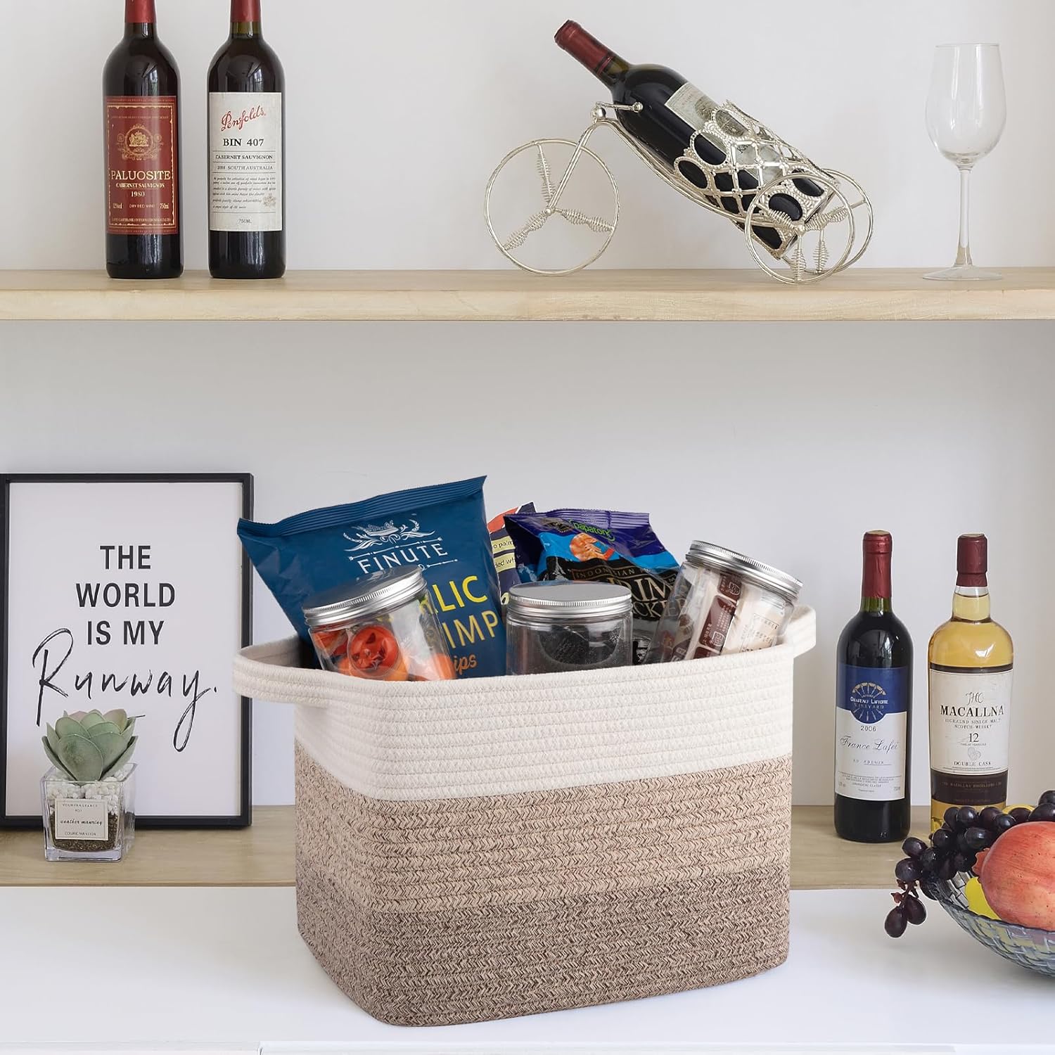 - High Quality Cotton Rope Woven: Woven cotton thread is very soft and don't damage your floors and furniture. Seamless design, not easy to tear,More firm than rattan and plastic materials. Our storage basket has no harsh chemiacls added, and the cotton rope basket is safe for kids, elders and pets. Firm enough and stylish enough to go anywhere in the home
