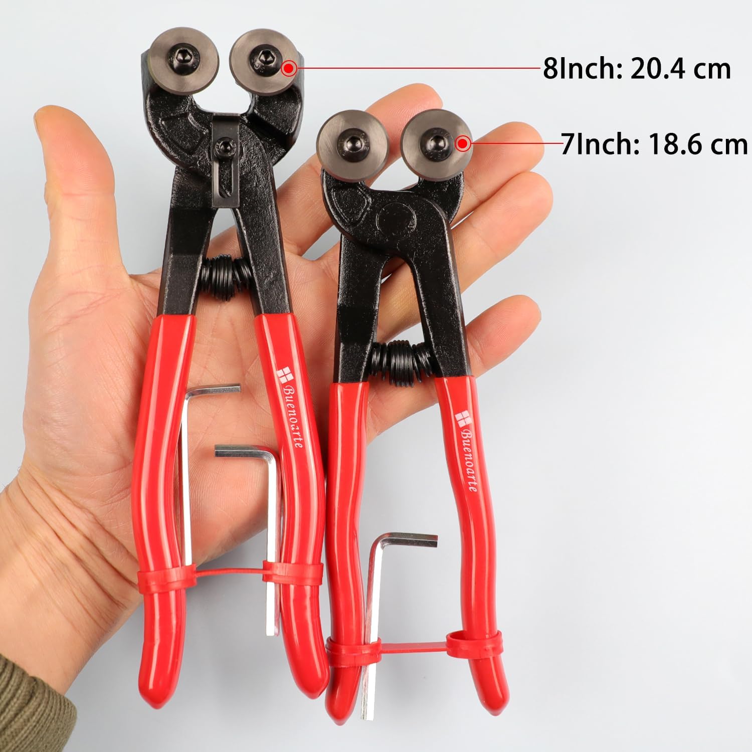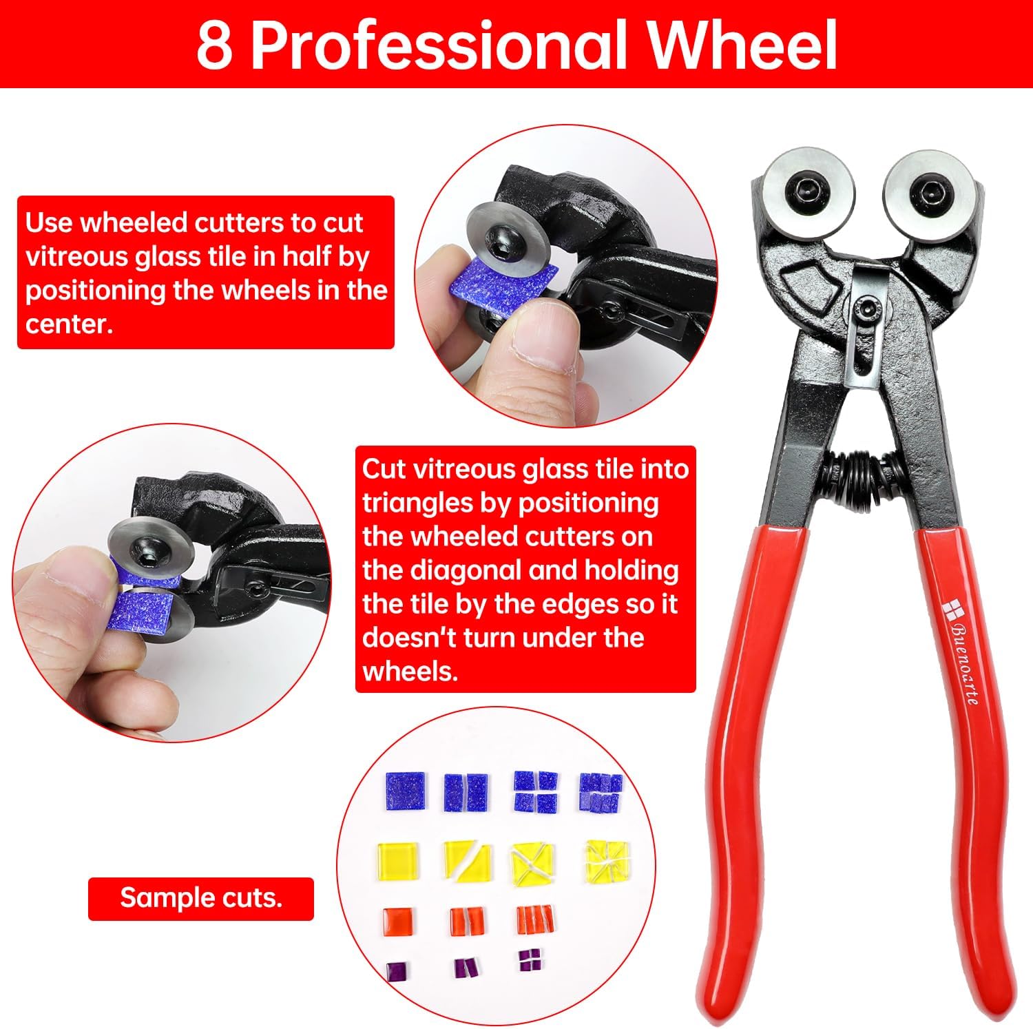 Glass Tile Nippers - Heavy Duty Wheeled Glass Mosaic Nipper & Hd Ceramic Tile Nipper, Tile Cutter Pliers Soft-grip Handle - Shapping Plier, Nipper Cutting Tools (8 Inch Wheeled Glass Mosaic Nipper)