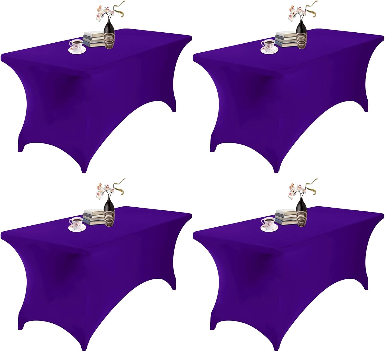 4Pack Spandex Waterproof Table Covers 6ft,Spandex 6ft Waterproof Table Cover for Party,Wedding, Banquet, and Events(Purple)