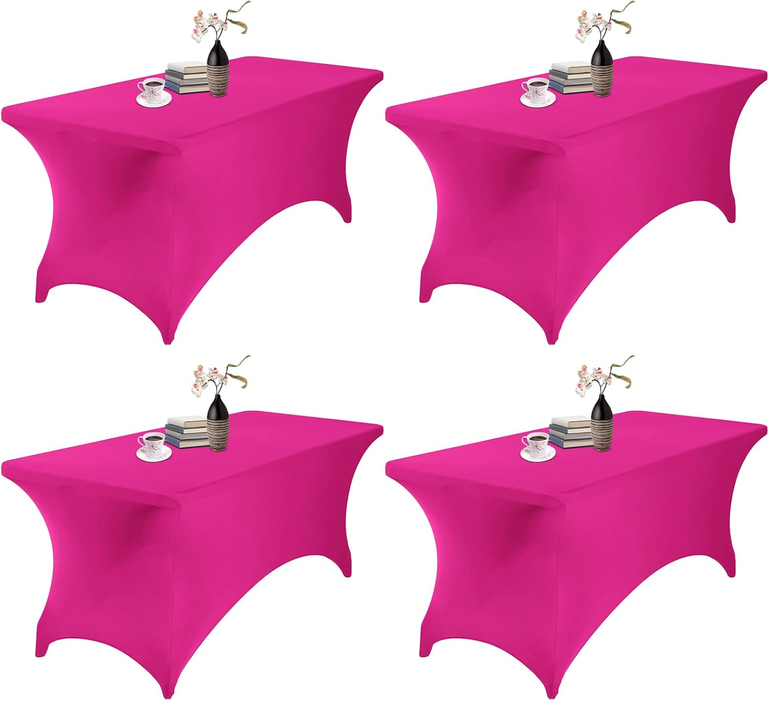 4Pack Spandex Waterproof Table Covers 6ft,Spandex 6ft Waterproof Table Cover for Party,Wedding, Banquet, and Events(Fuchsia)