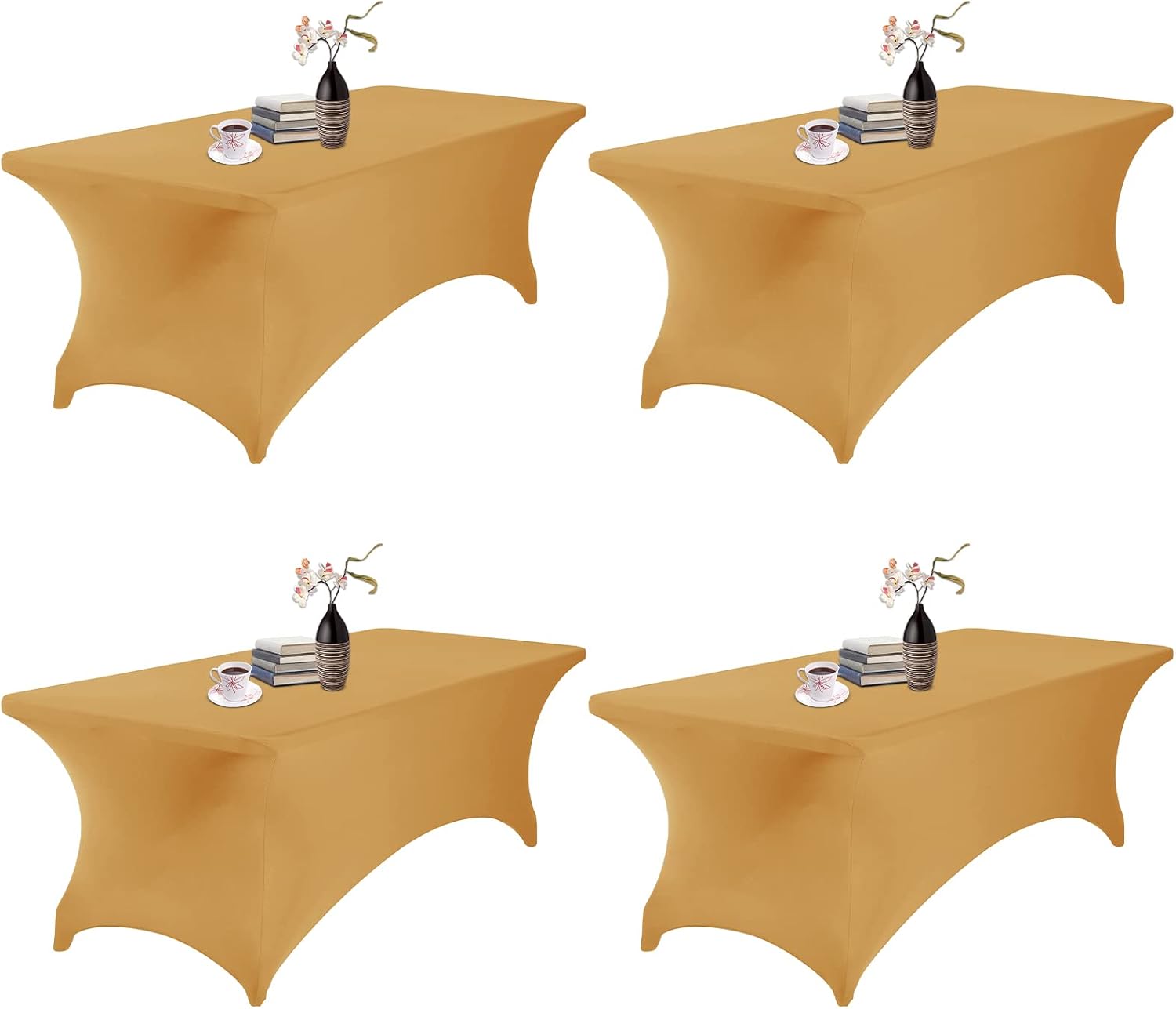 4Pack Spandex Waterproof Table Covers 8ft,Spandex 8ft Waterproof Table Cover for Party,Wedding, Banquet, and Events(Gold)