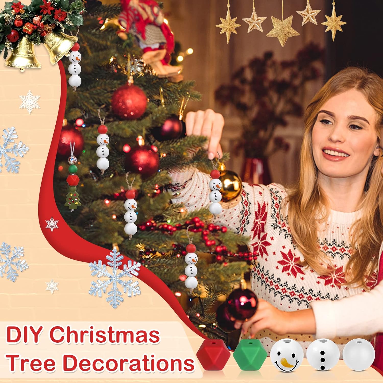 - 𝐏𝐫𝐞𝐦𝐢𝐮𝐦 𝐒𝐢𝐥𝐢𝐜𝐨𝐧𝐞 𝐌𝐚𝐭𝐞𝐫𝐢𝐚𝐥 There comes with silicone beads and wooden beads. The beads are made of premium soft elastic silicone material, durable and not easy to deform. With a smooth surface, the craft focal beads will make finished ornament look more sophisticated and make you enjoy a great handicraft experience. Moreover, the Christmas beads can be washed with rinse in soapy or warm water to keep clean bright in gorgeous color for a long-time storage, and not easy to fade.