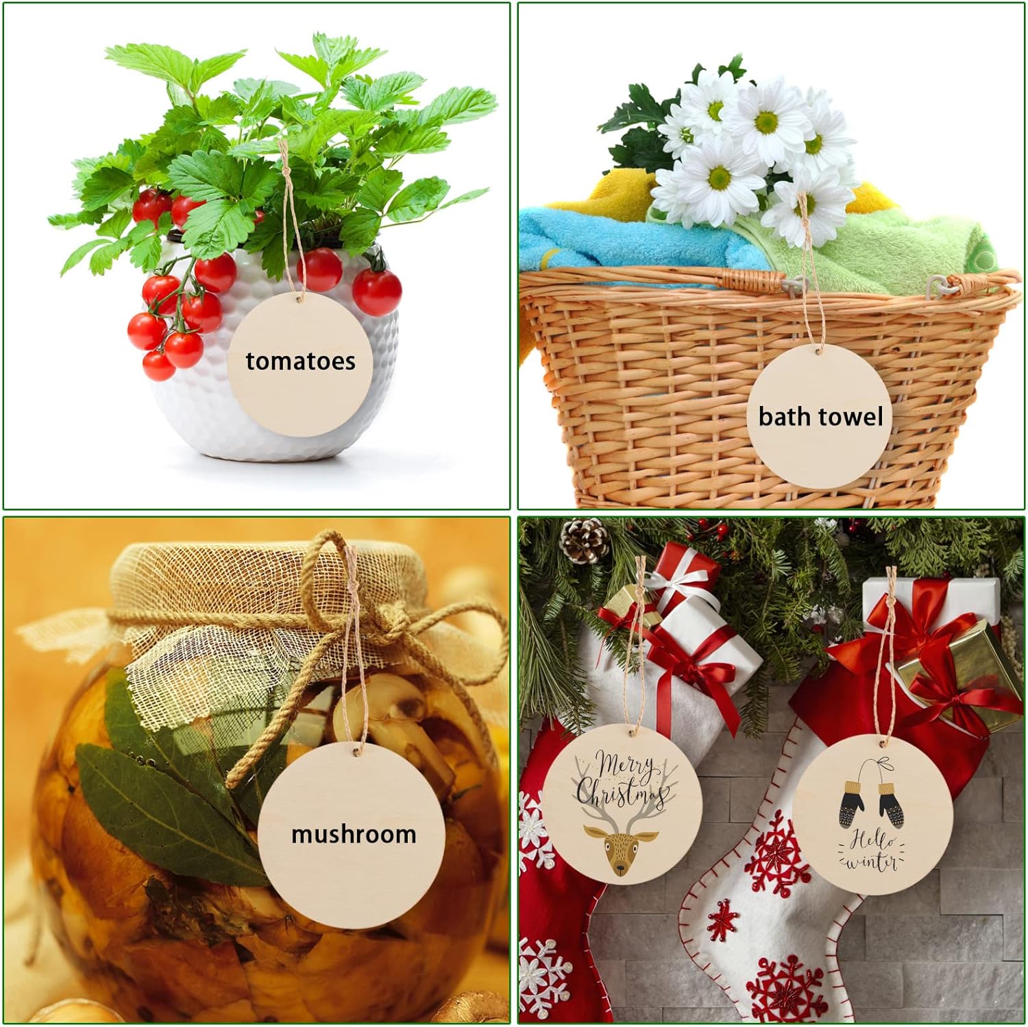 - Fun to DIY: the round wooden tags are designed with a blank smooth surface, you and your children can stain or paint on the wooden disc, make different styles of handmade tags, present tags or holiday decorations for your family members and friends.
