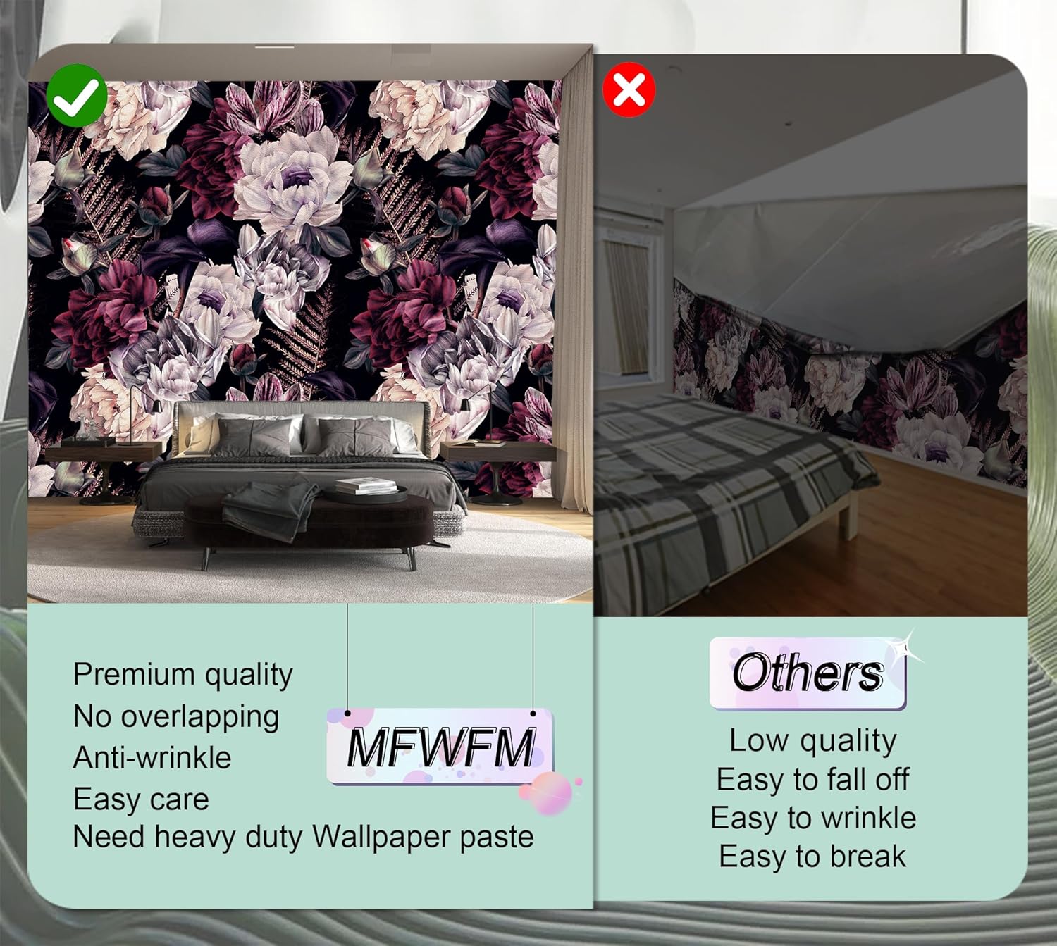 Floral Wallpaper Watercolor Dark Peony Flowers Mural Wallpaper for Bedroom Living Room (Not Peel n' Stick)