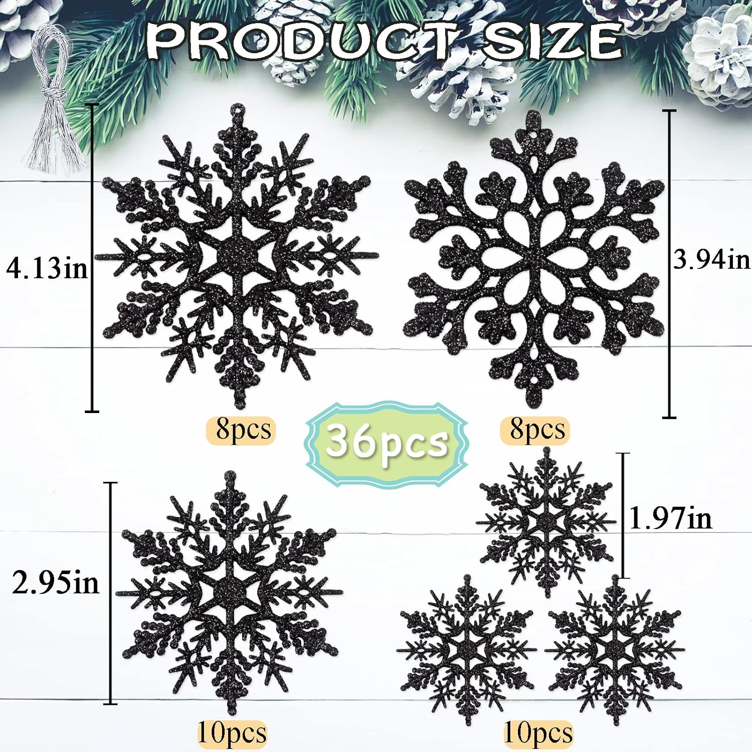 36pcs Black Christmas Snowflake Ornaments, Plastic Glitter Hanging Snow Flakes for Christmas Tree Decorations Winter Wonderland Frozen Birthday Party Holiday Home Decor Craft Snowflakes