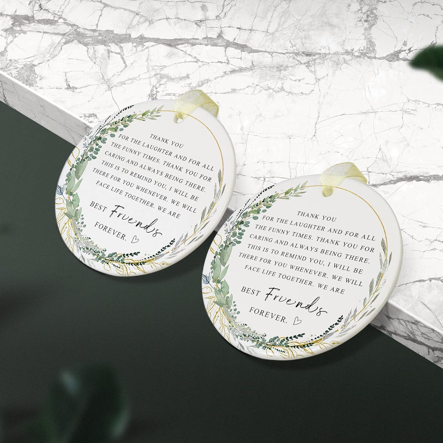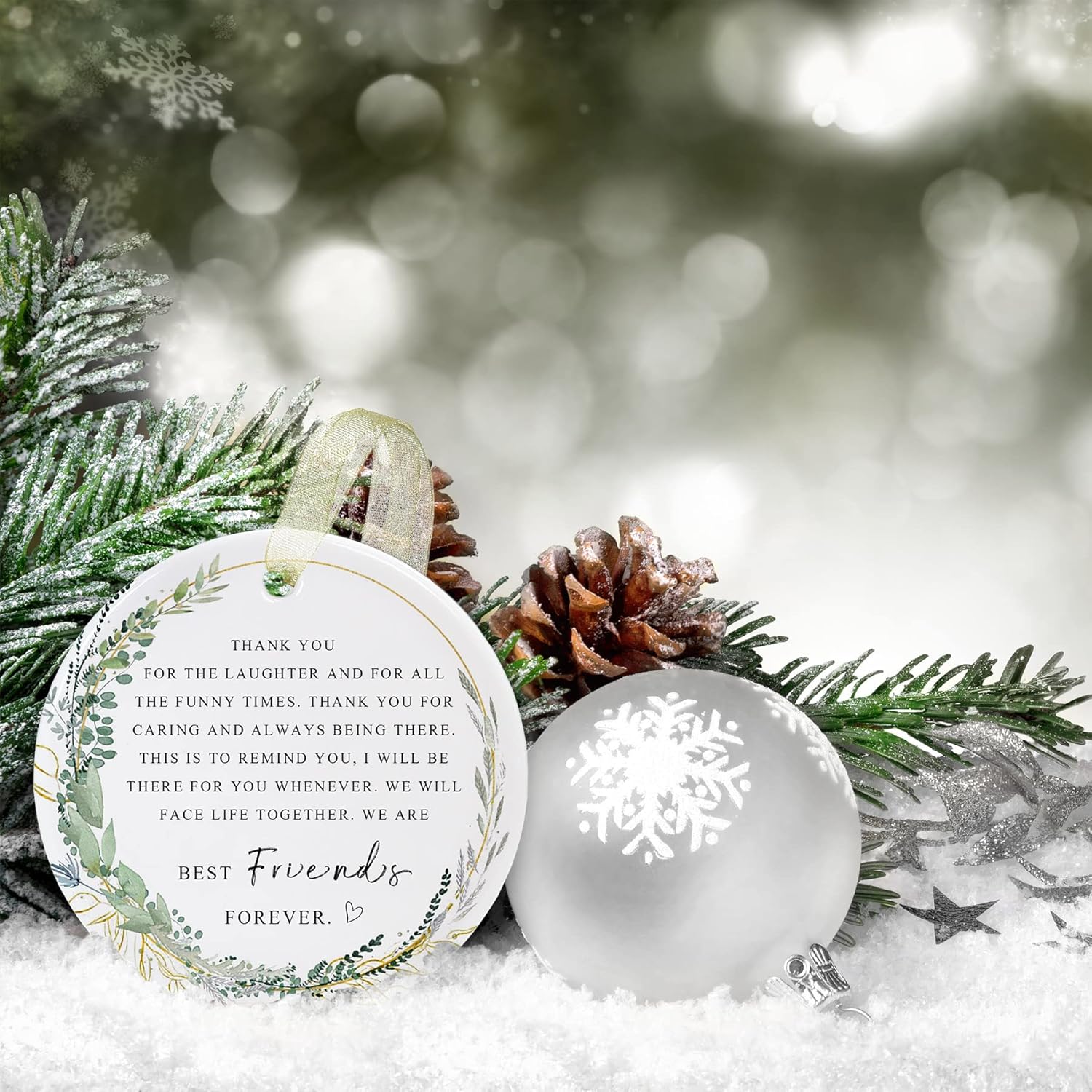 Friend Ornaments 2025 Best Friend Ornament Christmas Friendship Besties Forever Ornament Friends Tree for Graduate Best Friend Ever Double-Sided Printing Ceramic (2.9"