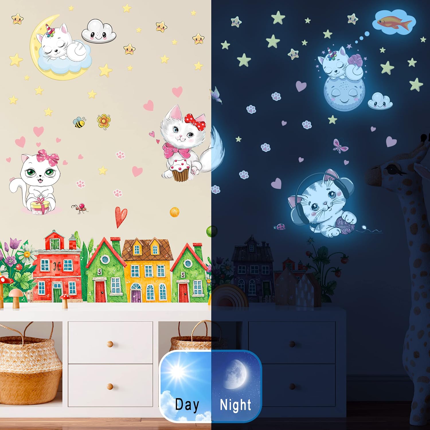 - 【Perfect Gifts for Kids】- This is a perfect special gift for kids, boys and girls all like cute animals. The cat’s stickers decoration makes the room full of childishness. The soft light in the dark makes the children no longer afraid and have a sweet dream.