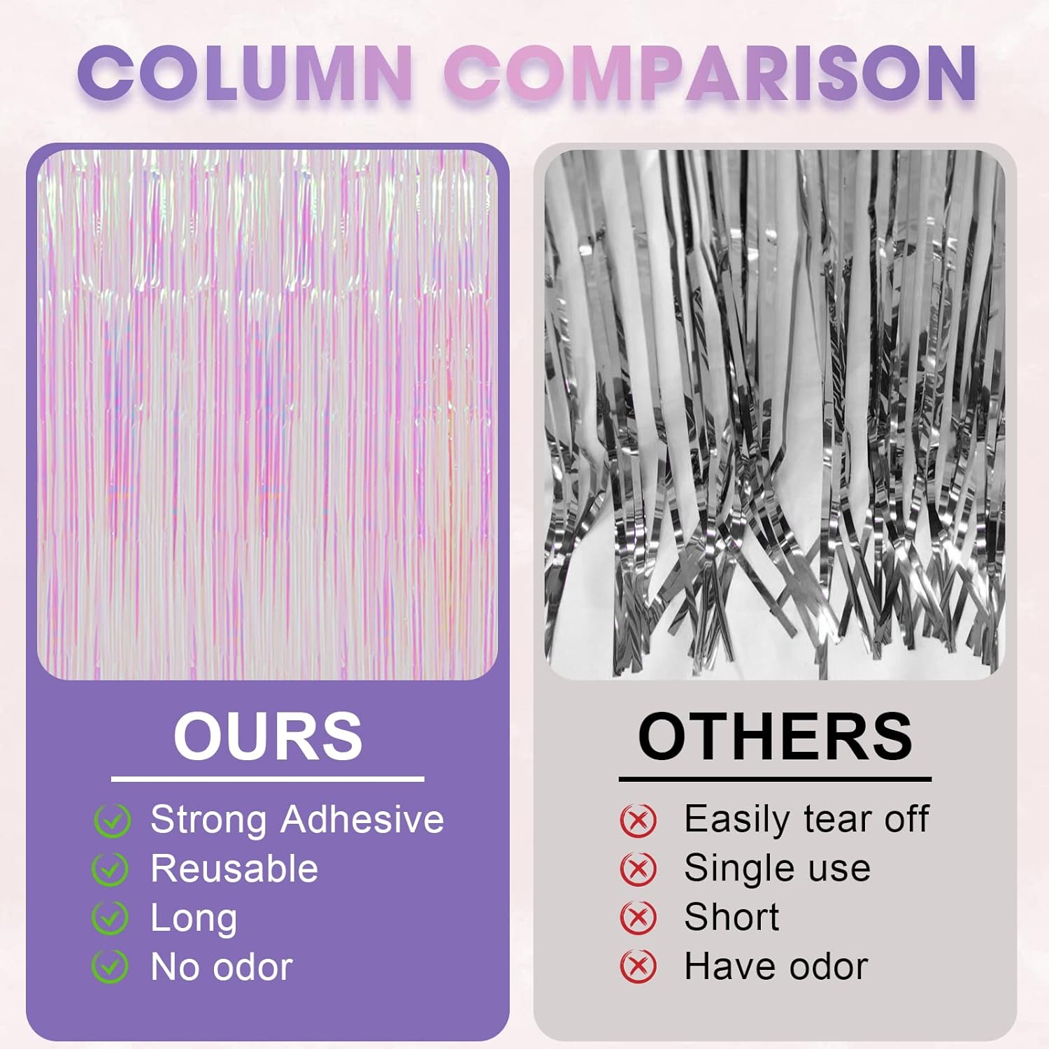 - Premium Material: This Iridescent transparent foil curtain backdrop is made of stable tinsel, non-fading, stay shiny and reusable. Unfold it and then enjoy your glittering party