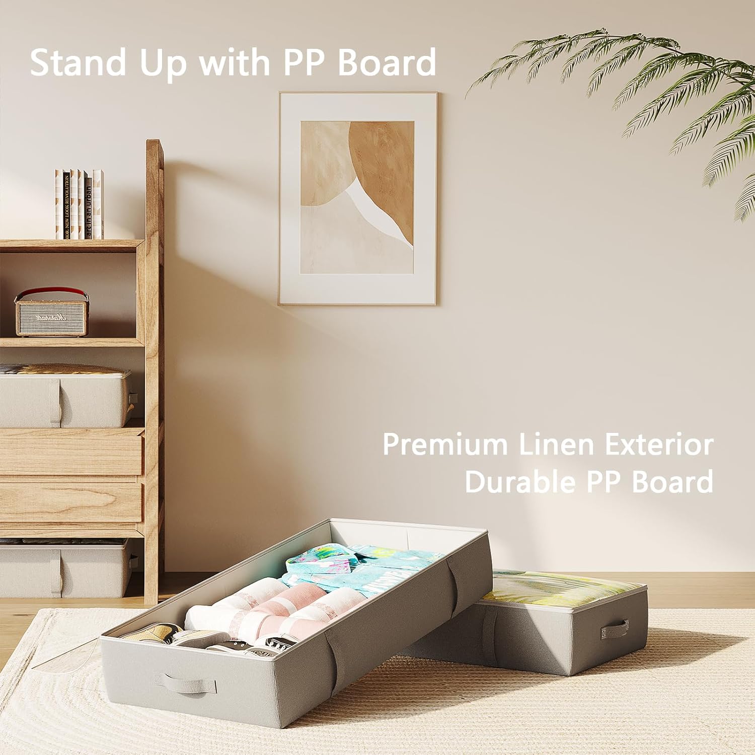 - Your room can be more organized - thanks to our low profile and STURDY underbed storage box, you can place it under the bed, in the closet, on top of the closet, even under the sofa, or any other small spaces in your home. You'll find it so helpful that your home will seem bigger!
