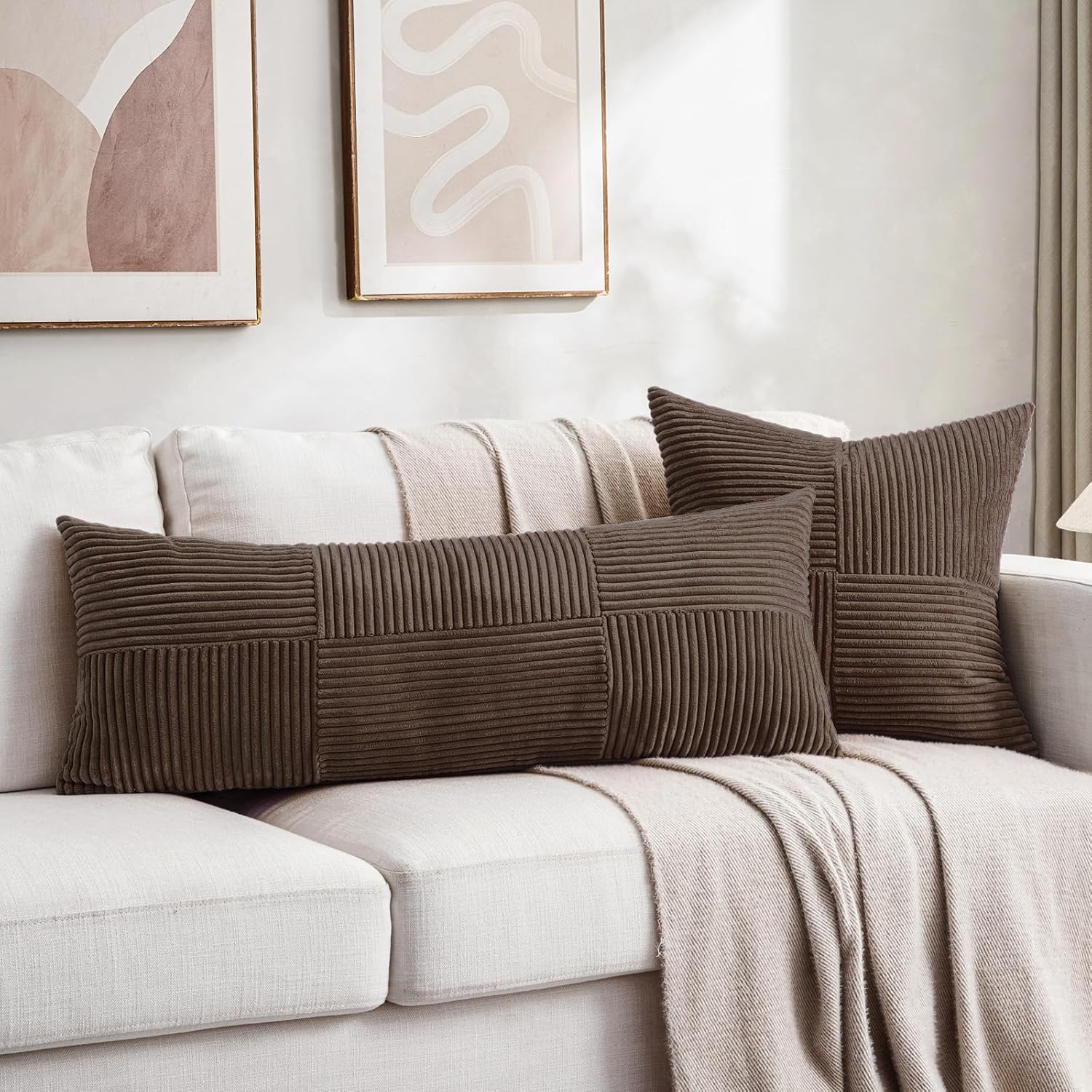 Fancy Homi 2 Packs Dark Brown Decorative Throw Pillow Covers 20x20 Inch for Living Room Couch Bed Sofa, Rustic Farmhouse Boho Home Decor, Soft Corss Corduroy Patchwork Accent Cushion Case 50x50 cm