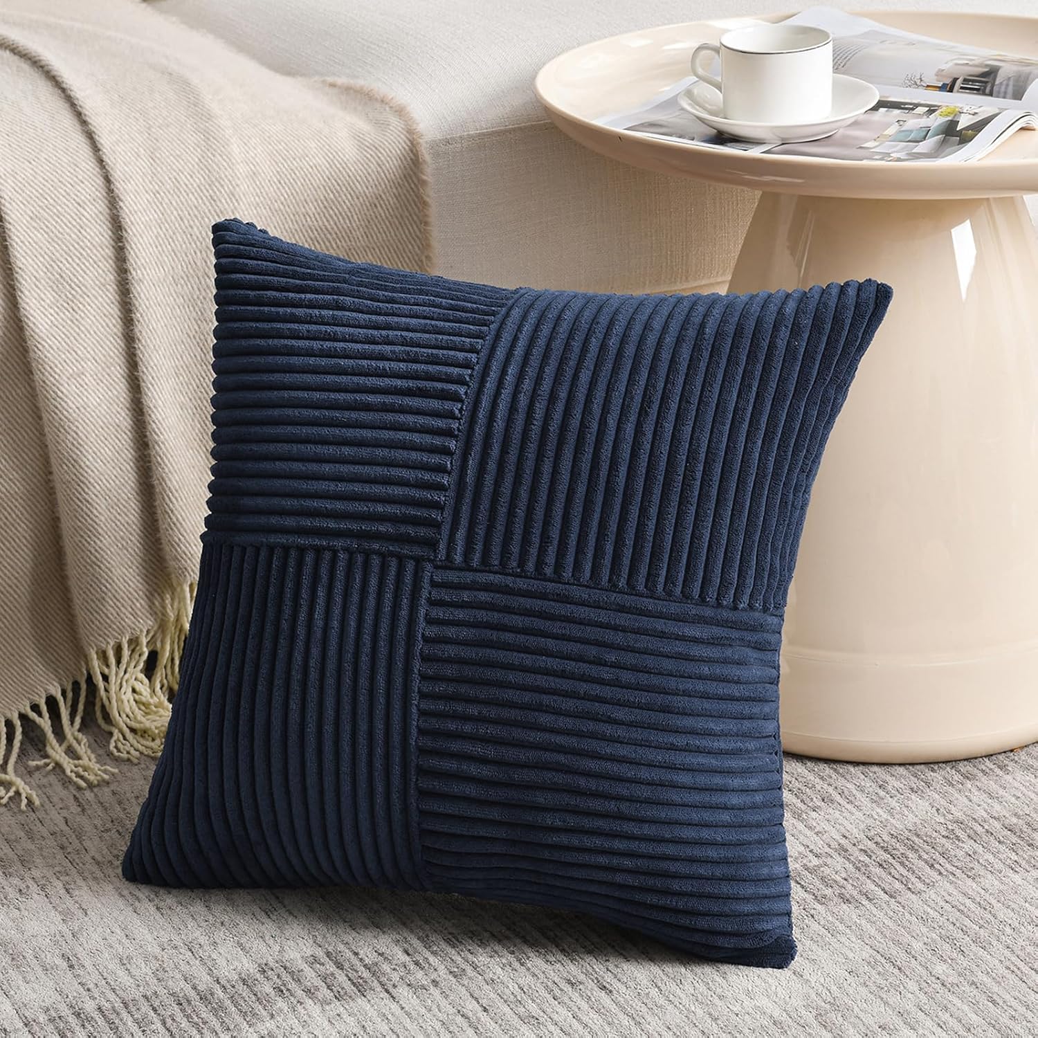 Fancy Homi 2 Packs Navy Blue Samll Decorative Throw Pillow Covers 12x12 Inch with for Couch Bed Sofa, Rustic Farmhouse Boho Home Decor, Soft Corss Patchwork Corduroy Square Cushion Case 30x30 cm