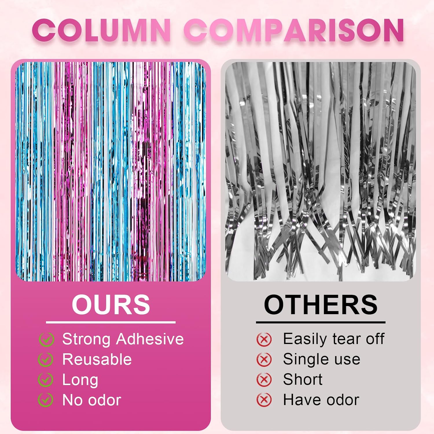 - Premium Material: This Blue and Pink foil curtain backdrop is made of stable tinsel, non-fading, stay shiny and reusable. Unfold it and then enjoy your glittering party