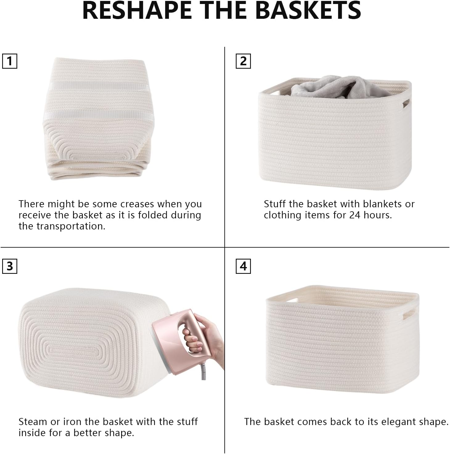 - Stylish and Elegant: SIXDOVE Cotton Rope Storage Basket. The woven design of these baskets adds a touch of rustic charm to any room decor, making them a perfect addition to your living room, bedroom, bathroom, or nursery. These cube rope storage baskets enhance any room or decor in your home