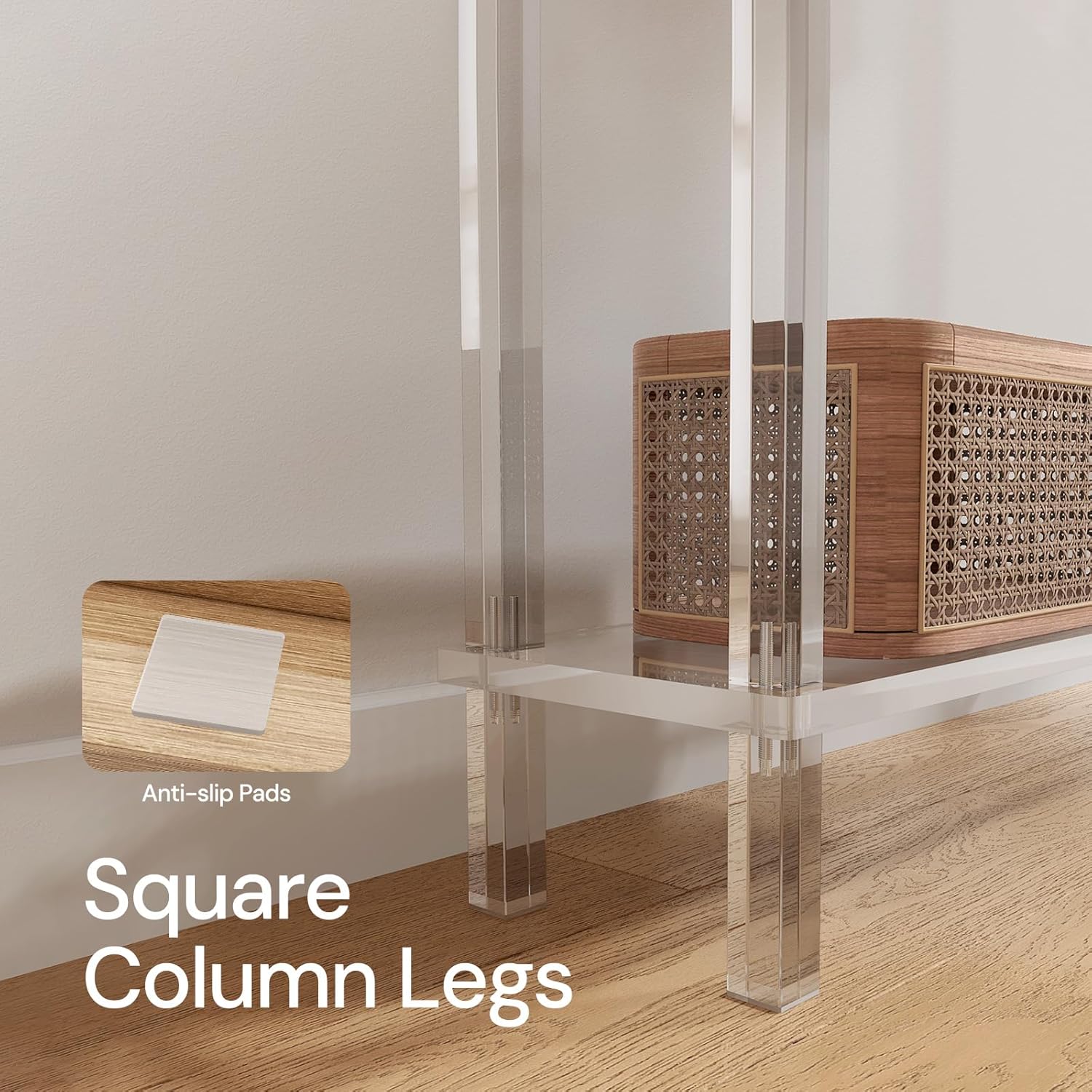 Acrylic Narrow Console Table for Entryway, 7.6" D x 39.4" W x 31.5" H, Square Legs, Skinny Entry Table for Sofa, Foyer, Hallway, Living Room, Modern, 2-Tier, Clear