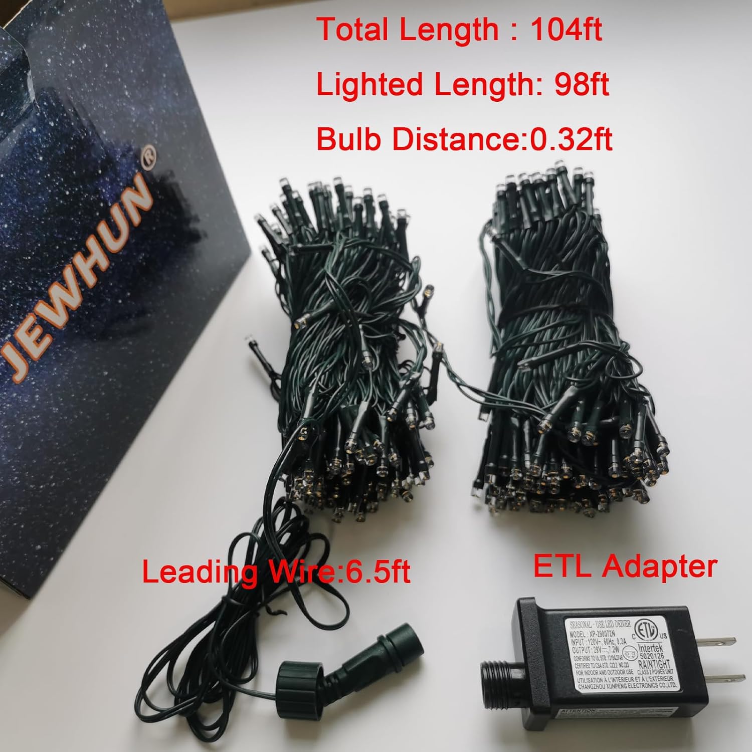 - 29V Low Voltage and Easy to Pacakge : Ensure a safe holiday with our 29V low voltage Christmas lights for tree,perfect for decorating your tree, JEWHUN waterproof led christmas lights string provide a soft, warm glow while minimizing energy consumption. With quick setup and easy wrapping around branches,when the season ends, they are simple to package and store. Ideal for those seeking both safety and convenience,our 100ft xmas lights make holiday decorating a breeze