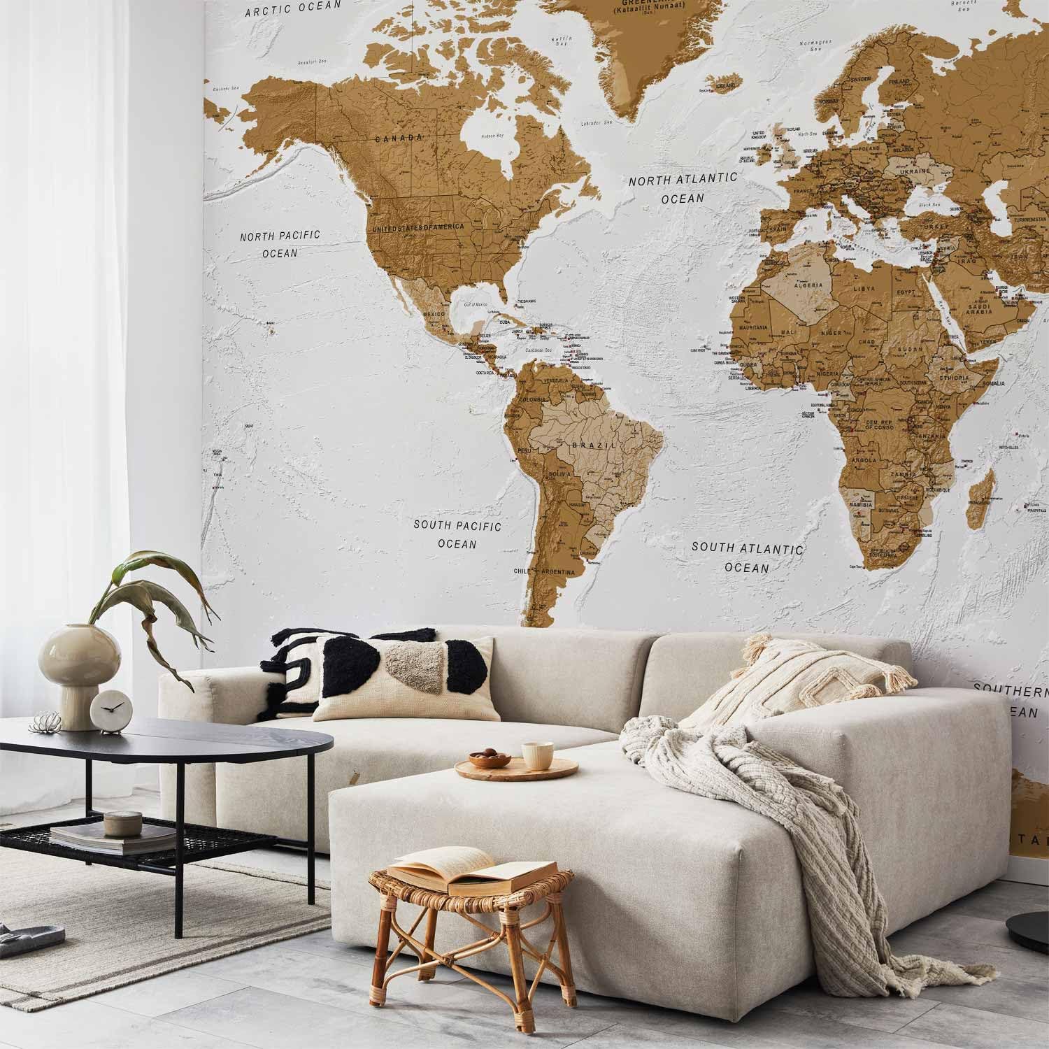 artgeist Premium Wall Mural World Map 98x69 in - XXL Non-Woven Wallpaper Fleece Wall Decor Photo Print Picture Image Design Home Map of The World k-A-0093-a-a