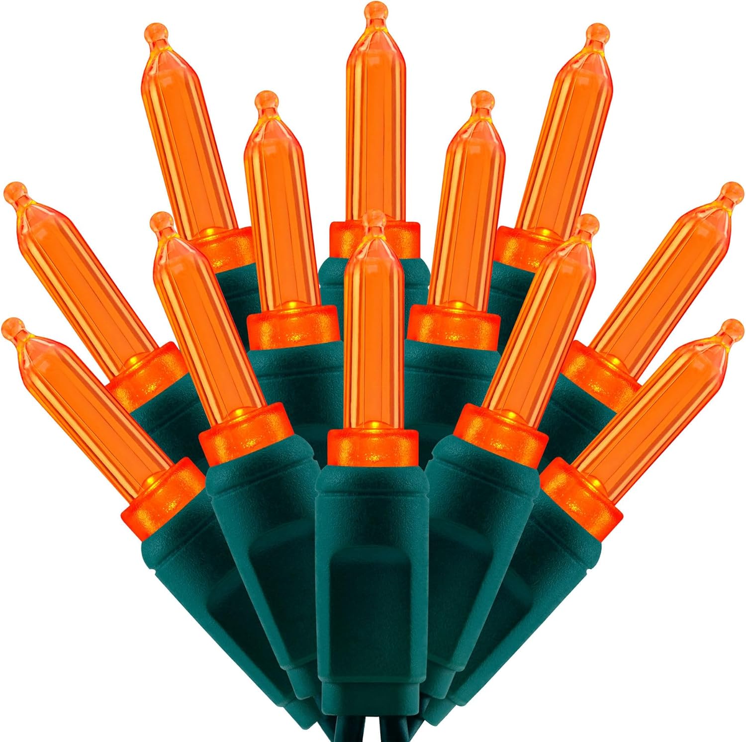 100 Orange One-Piece LED Christmas Lights, 33 ft Green Cord High Waterproof UL Certified T5 Outdoor String Lights (Orange)