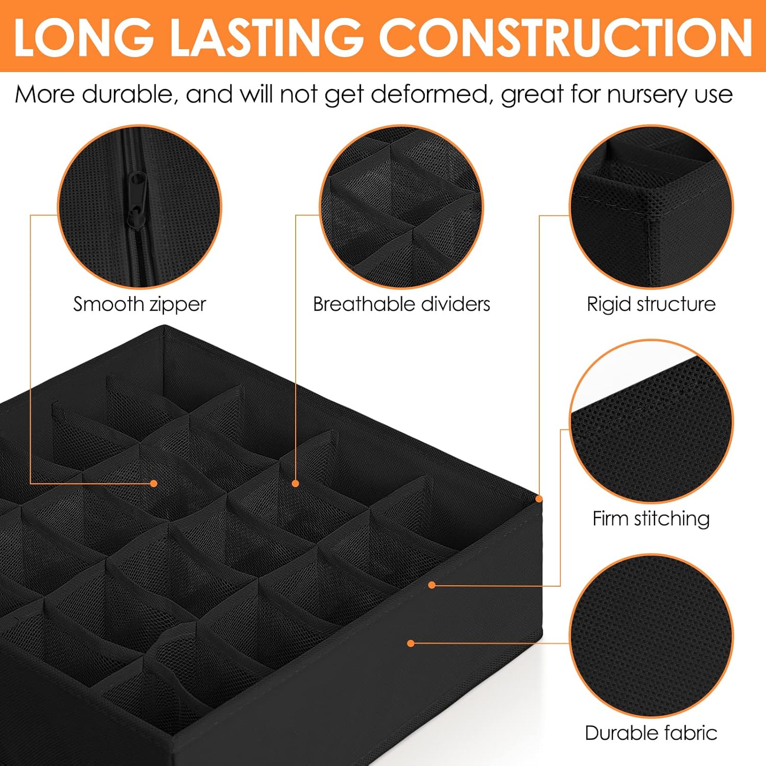 - ăFIT ALL DRAWERSăMeasuring 4" high, these dresser drawer organizers will perfectly fit with most of dresser drawers, sock underwear drawer. Totally 12 organizer bins, 2pcs 6-cell as shirt or bra organizer (up to C cup), 2pcs 24-cell as sock organizer, 4pcs 8-cell as tie underwear organizer, 4pcs 6-cell as scarf, belt, baby clothes drawer organizer.