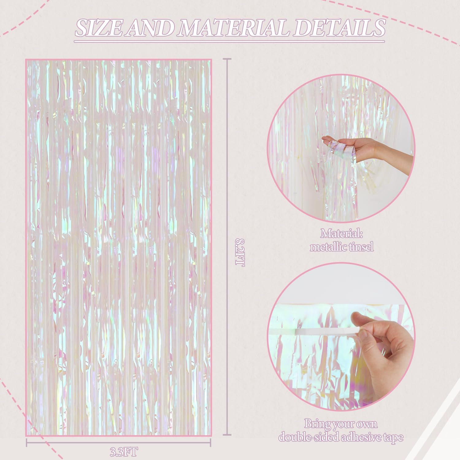 - 【Package Included】Tinsel Curtain 3 Pack, each foil fringe backdrop size 3.3ft x 8.2ft. It's long enough to fit any decorate occasion.