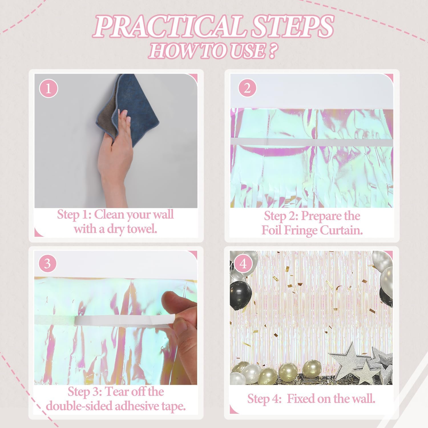 - 【Widely Applications】These foil curtain backdrops are perfect for Birthday, Christmas, Halloween, Theme Party, Engagement Party, Anniversary, Homecoming, Bridal shower, Bachelorette Party, Baby shower, Graduation, Wedding, Masquerade, Disco, etc.