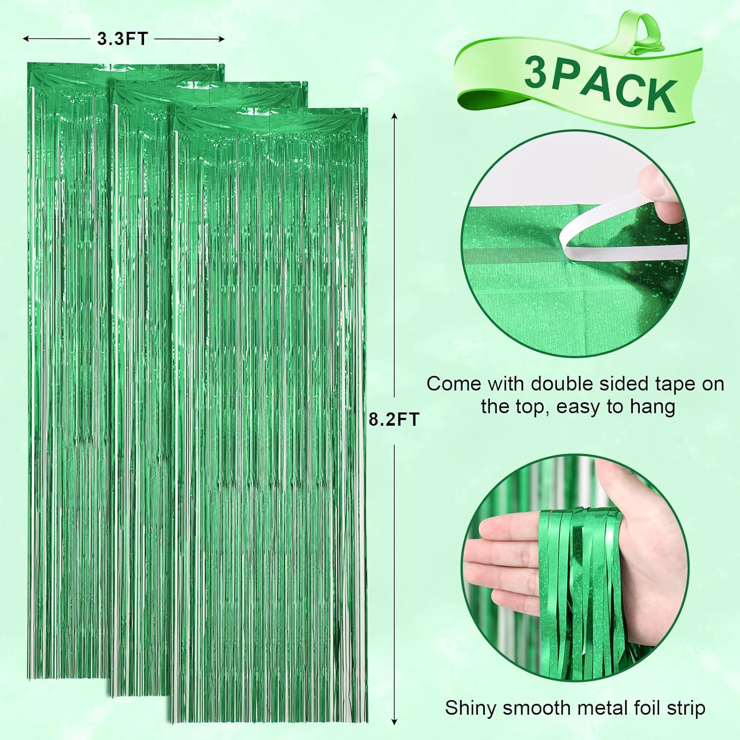 3 Pack 3.3 x 8.2 ft Laser Green Foil Fringe Backdrop Curtains, Tinsel Streamers Birthday Party Decorations, Fringe Backdrop for Graduation, Baby Shower, Gender Reveal, Disco Party